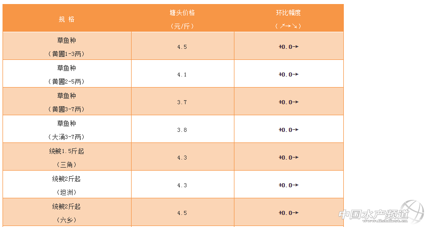 文/ 珠海海龍、水產(chǎn)前沿 吳佳輝 中國水產(chǎn)頻道原創(chuàng)報道,本周魚價穩(wěn)定,草魚種和統(tǒng)鯇的價格沒有明顯變化,流通略微好轉(zhuǎn),客戶出售心態(tài)明顯。 大草魚和脆肉鯇的價格持續(xù)走穩(wěn),流通速度依舊緩慢,價格短期內(nèi)難以回升。 |