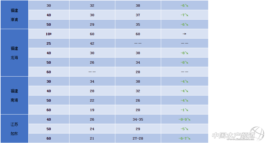 文/圖 水產(chǎn)前沿 植銀素 本周行情 “前兩天27條蝦報價40元沒賣,今天36元都難賣!” “蝦價一跌大家都跟著出,好蝦壞蝦都上了!” “40條才26元/斤,蝦價跌得快,市場太亂了!” 中國水產(chǎn)頻道原創(chuàng)報道,筆者今天了解到,隨著白蝦不斷上市,蝦價或?qū)⒂瓉矶唐诘牡臀贿\行!本周廣東珠三角地區(qū)蝦價與上周形成了鮮明對比。珠海,江門地區(qū)蝦價跌幅達到14元/斤!中山地區(qū)也不例外,40條規(guī)格蝦報價只有26元/斤。但是隨著氣溫回升,蝦子上料跟上后,長速加快,目前上市蝦以40-50條為主,小蝦病蝦逐漸減少。 福建地區(qū)養(yǎng)殖戶表示:“養(yǎng)殖戶跟風現(xiàn)象太嚴重,出蝦量多,價位很不穩(wěn)定。”本周該地區(qū)蝦價跟跌4-8元/斤。海南地區(qū)蝦價本周維持穩(wěn)定,受外邊市場影響較少! 同樣,如東地區(qū)蝦價在本周也呈現(xiàn)了下滑趨勢,當?shù)仞B(yǎng)殖戶表示,蝦價一跌大家都跟著出蝦,出得越多,跌得越快!當?shù)仫暳瞎緲I(yè)務(wù)員表示,蝦價調(diào)整也是正常現(xiàn)象,而且現(xiàn)在開始進入收成季節(jié),蝦價可能會保持低位運行。 各地行情分析 珠海:今日蝦價40條26元/斤,50條21元/斤,60條18元/斤。本周珠海蝦價可以說是做了一輪過山車,40條蝦從40元掉到26元/斤,跌幅達到14元/斤,成為廣東地區(qū)掉價最快的地區(qū)! 中山:本周蝦價40條27-28元/斤,50條24元/斤,60條19元/斤。中山地區(qū)蝦價也迅速下跌,跌幅10元/斤左右。近期以40-60條為主,天氣回溫加快,基本每天都上料,小蝦長速跟上了,但是價格并不理想。 江門:40條28元/斤,50條25元/斤,60條22元/斤,70條18元/斤。本周白蝦塘頭價掉價潮席卷珠三角,江門地區(qū)蝦價也是跟跌10-14元/斤不等。目前需求減少,蝦價或?qū)⒊掷m(xù)低位運行,病蝦上市也對市場價格產(chǎn)生沖擊。 湛江:40條的27-28元/斤,50條22-23元/斤。湛江地區(qū)白蝦貨源逐漸增加,上周回漲后又迅速掉價,跌幅10-12元/斤。 海南:40條27-28元/斤,50條22元/斤,55條18.5元/斤,60條17塊。海南地區(qū)蝦價本周呈現(xiàn)穩(wěn)定狀態(tài)。 福建漳州:漳浦:30條32元/斤,40條30元/斤,50條29元/斤。龍海:25條42元/斤,40條30元/斤,50條25元/斤。南靖:30條34元/斤,40條28元/斤,50條22元/斤,60條19元/斤。 江蘇如東:40條26元/斤,50條24元/斤,60條21元/斤。目前如東地區(qū)貨源充多,蝦價持續(xù)下滑調(diào)整中,近期出蝦多以40-50條規(guī)格為主。有養(yǎng)殖戶表示:“看到蝦價一降,好多人都忍不住跟著賣蝦了!”業(yè)內(nèi)人士預(yù)計后期隨著直放苗上市,蝦價還會持續(xù)走低。 ※上述報價可能會因區(qū)域、規(guī)格、品質(zhì)和時間等因素的不同而會產(chǎn)生差異,在此僅供參考。 |