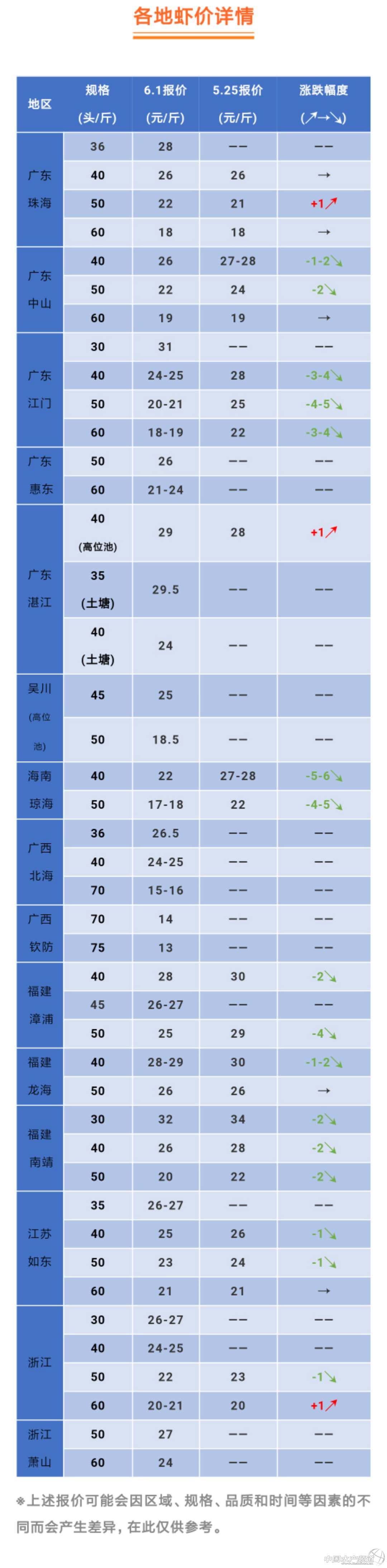 | 中國(guó)水產(chǎn)頻道原創(chuàng)報(bào)道, 多地蝦價(jià)止跌維穩(wěn),端午將至,蝦價(jià)要漲?6月1日全國(guó)白蝦塘頭報(bào)價(jià)及行情解析 文/圖 水產(chǎn)前沿 植銀素 本周行情 從5月開(kāi)始,國(guó)內(nèi)對(duì)蝦行情持續(xù)低迷了一個(gè)月,國(guó)內(nèi)主產(chǎn)區(qū)塘頭價(jià)基本呈現(xiàn)下跌狀態(tài),尤其是經(jīng)過(guò)下旬連續(xù)幾場(chǎng)暴雨影響,加上高溫,發(fā)病情況較重。本周,中山、珠海蝦價(jià)經(jīng)過(guò)一輪調(diào)整,大蝦價(jià)格較好,整體有止跌的趨勢(shì);隨病蝦上市,江門(mén)蝦價(jià)再受沖擊,成珠三角跌價(jià)最嚴(yán)重區(qū)域,后市難以預(yù)估。湛江地區(qū)近期雨水充足,發(fā)病和出蝦增加很多,蝦價(jià)波動(dòng)較大,養(yǎng)殖戶(hù)表示近期蝦價(jià)很亂,行情也亂!但是近期蝦中找蝦的電話多起來(lái)了,或隨端午將至,蝦價(jià)有望上漲! 廣西北海、欽防地區(qū)近期出塘白蝦多以60-70條規(guī)格為主,少量40-60條的蝦上市,而且價(jià)格并不理想。養(yǎng)殖戶(hù)表示近期蝦發(fā)病多,被迫上市,40條蝦報(bào)價(jià)只有24-25塊錢(qián),后市漲價(jià)信號(hào)不強(qiáng)。 福建地區(qū)有養(yǎng)殖戶(hù)表示近期價(jià)格止跌了,近一周較穩(wěn)定。“止跌或是行情向好的一個(gè)信號(hào)!”有養(yǎng)殖戶(hù)表示對(duì)未來(lái)的行情有信心,尤其是端午要來(lái),需求增長(zhǎng)會(huì)帶動(dòng)蝦價(jià)上漲,目前大蝦價(jià)格穩(wěn)定,發(fā)病蝦被迫上市,價(jià)格波動(dòng)較大。 江蘇地區(qū)也有養(yǎng)殖戶(hù)反應(yīng)近期蝦價(jià)有止跌趨勢(shì),大蝦不多,品質(zhì)好的蝦價(jià)格上漲1-2元/斤,整體價(jià)格穩(wěn)定,貨源供應(yīng)充足。浙江地區(qū)白蝦也相繼上市,目前出塘以小蝦為主,蝦價(jià)與去年同期相差不大。 各地行情分析 珠海:今日蝦價(jià)36條28元/斤,40條26元/斤,50條22元/斤,60條18元/斤。本周珠海蝦價(jià)對(duì)比上周同期維持穩(wěn)定,業(yè)內(nèi)人士估計(jì)受暴雨災(zāi)害之后,蝦價(jià)難有上漲。 中山:本周蝦價(jià)40條26元/斤,50條22元/斤,60條18.5元/斤。本周中山地區(qū)蝦價(jià)維穩(wěn)為主,目前大規(guī)格存塘蝦少,整體塘頭交易量較少。目前天氣逐漸升溫,存塘量逐漸增多,部分養(yǎng)殖戶(hù)開(kāi)始分塘。 江門(mén):30條31元/斤,40條24-25元/斤,50條20-21元/斤,60條16-18元/斤。本周江門(mén)地區(qū)白蝦塘頭價(jià)掉價(jià)嚴(yán)重,收購(gòu)商表示目前出蝦養(yǎng)殖戶(hù)很多,受前期雨水充足影響病蝦占比較大,上市對(duì)價(jià)格有一定沖擊,蝦價(jià)或?qū)⒊掷m(xù)低位運(yùn)行。 湛江:高位池40條21元/斤;吳川高位池:45條25元/斤,50條18.5元/斤;坡頭土塘:35條的29.5元/斤,40條24元/斤。湛江地區(qū)白蝦貨源逐漸增加,但是存塘優(yōu)質(zhì)大蝦不多,養(yǎng)殖戶(hù)表示目前價(jià)格比較混亂,整體較為平穩(wěn),預(yù)計(jì)后期漲價(jià)可能較大。 海南:40條22元/斤,50條18元/斤,60條16塊。本周海南地區(qū)蝦價(jià)呈現(xiàn)下跌趨勢(shì),優(yōu)質(zhì)大蝦供應(yīng)吃緊,收購(gòu)商表示近期訂單較少,交易量不多,隨著存塘蝦增加,市場(chǎng)逐漸表現(xiàn)出供大于求。 福建漳州:漳浦40條28元/斤,45條26-27,50條25元/斤。南靖:30條32元/斤,40條26元/斤,50條20元/斤。本周南靖地區(qū)蝦價(jià)表現(xiàn)較為穩(wěn)定,有止跌趨勢(shì),部分養(yǎng)殖戶(hù)認(rèn)為端午節(jié)將至,蝦價(jià)止跌就是漲價(jià)的信號(hào)。近期雨水+高溫影響加大,業(yè)內(nèi)人士建議養(yǎng)殖戶(hù)需謹(jǐn)慎應(yīng)對(duì)。 江蘇如東:35條26-27元/斤,40條24-25元/斤,50條23元/斤,60條21元/斤。如東地區(qū)貨源充多,本周蝦價(jià)有止跌趨勢(shì),暫時(shí)維持穩(wěn)定。據(jù)當(dāng)?shù)貥I(yè)務(wù)員表示今年早造蝦成功率較高。 |