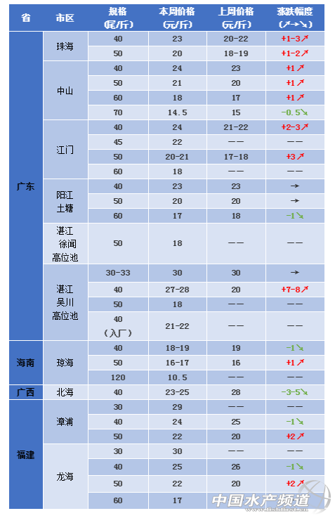 | 中國水產頻道原創報道, 蝦價觸底反彈,這一波漲價能堅持住嗎? 文/水產前沿 植銀素 【本欄目由《水產前沿》、“西瑞動保”聯合制定,助各養殖朋友,養得好、賣得好!】 本周行情 本周,廣東地區蝦價終于傳來好消息!上周水產前沿調查到蝦價基本維持穩定,獲將迎來上漲。果然,今天中山、江門報價員表示蝦價已經開始有上漲的苗頭,40條蝦上漲了1-2元/斤,優質大蝦依舊緊缺,而湛江吳川的優質大蝦更迎來了7元/斤的漲幅!由于天氣影響,今年成品蝦大量上市相較去年延遲了大半個月,發病上市的小蝦價格還是不理想,處于較低水平。養殖戶表示,近期龍舟水越發猛烈,后期對蝦養殖越難,其實后市漲價勢頭可能不足。 江蘇如東地區大蝦較少,主要以中小規格為主,但是貨源正逐漸增多,本周蝦價上漲1-2元,是利好消息,但也有養殖戶表示目前形勢并不利于蝦價上漲,春蝦成活率達到8成以上。浙江地區整體價格維穩。 本周山東地區蝦價大跳水,報價員表示近期外塘蝦開始發病,緊接著上市帶低了山東整體價格,工廠化大蝦也失去了價格優勢,需求下降,蝦價難漲。 對于本周蝦價上漲,您認為后市如何,漲價能堅持多久,歡迎留言交流! 【注:蝦價行情主要取決于市場供需,具體價格以售貨渠道和品質為主要考量,本報價僅供養殖戶參考!】 國內部分產區蝦價分析 華南地區 中山:40條24元/斤,50條21元/斤,60條18元/斤,70條14.5元/斤。本周中山地區蝦價小幅上漲,目前珠三角地區存塘大蝦不多,交易量較平穩,預計后市穩定。 江門:本周蝦價40條24元/斤,45條22元/斤,50條20-21元/斤,60條18元/斤。本周江門地區蝦價跟漲,但是成品蝦較少,上市蝦以帶病小蝦為主,大鰲地區普遍存塘蝦規格只有100條左右,預計6月底會有大量成品蝦上市。 陽江:本周土塘蝦價40頭23元/斤,50條20元/斤,60條17元/斤。本周陽江地區蝦價維穩,基本以土塘為主,高位池夏季轉養石斑魚、草蝦共占6成左右,今年天氣不穩定,預計后市養殖難度較大,因此整體供應量或減少。 湛江:徐聞高位池:50條18元/斤,目前該地區以50條左右規格為主,整體供應有限,交易不多。吳川高位池:27條33元/斤,30-33條30元/斤,40條27-28元/斤,50條18元/斤。本周吳川地區蝦價大漲,40條蝦漲幅7-8元/斤,高價當屬于優質大蝦,所以入廠價40條是21-22元/斤。雖然目前蝦價上漲明顯,但是持續高溫、暴雨,養殖戶表示后期養殖難度太大,成功率或將走低,后市看平! 海南:本周蝦價40條18-19元/斤,50條16-17元/斤。本周海南價格維穩為主。 福建:漳浦:30條29元/斤,40條24元/斤,50條22元/斤。龍海:30條30元/斤,40條25元/斤,50條22元/斤,60條17元/斤。本周福建地區蝦價上漲1-2元/斤,雖然漲幅較小,但是也是一個好消息,不過目前福建地區貨源漸少,尤其龍海地區存塘逐漸清空,夏季漳浦地區7成高位池養殖戶會轉養斑節對蝦,白蝦供應量將會減少。 華東地區 江蘇如東:30條22-24元/斤,40條21-23元/斤,50條19元/斤。對比上周同期,如東蝦價有小幅上漲,目前直放苗也逐漸出蝦,而且成功率較去年同期高,近兩年春蝦成功率達到8成以上,但是預計后期價格會維穩為主,漲價或許要到7月初。 浙江:30條23-24元/斤,40條20-21元/斤。浙江地區蝦價維持穩定,整體供需較為平衡,后市看平。 北方地區 山東日照:30條23元/斤,40條18元/斤。本周山東地區蝦價大跌,由于養殖情況不太順利,發病增多,外塘蝦開始大量上市,工廠化蝦價也被帶下來,大蝦也失去了價格優勢。 遼寧營口:目前土塘投苗開始已經有半個到一個月,整體養殖情況正常,工廠化出蝦逐漸減少。 養殖小貼士 高密度對蝦養殖模式中隨著放苗密度的增加,天然的餌料已經不能滿足對蝦的生長需要,很多養殖戶仍然在對蝦長到3cm之前都在養水,造成對蝦營養缺乏,身體虛弱,抗病力弱,容易發病。 在對蝦養殖前期,根據對蝦放苗密度,及時觀察對蝦的攝食及胃腸食物情況,隨著生長慢慢增加前期對蝦所需的營養。 及時補鈣既可以改善對蝦的攝食,又能保證蝦苗的營養需要,提高對蝦活力,增強免疫力,減少發病的幾率,獲得良好的經濟效益。 吃料慢的問題剖析及解決方案 1.腸胃病 腸炎、白便都屬于腸胃病,一般而言腸炎是細菌病,也可能是肝臟受損,水體環境和水體環境帶有細菌和霉菌都很容易引起對蝦得腸胃疾病。往往腸炎或白便的情況下,對肝臟的排毒也是巨大的。所以吃料慢也是必然的。建議:提前預防,定期投喂:乳酸菌、楊樹花等調理腸道。 2.寄生蟲病 蝦的寄生蟲主要有三種:纖毛蟲、孢子蟲、甲殼類原蟲。 纖毛蟲與甲殼類原蟲都是寄生在蝦的體表、附肢及鰓上。 孢子蟲主要是寄生在蝦的肌肉里,肉眼看,蝦的后半身肌肉一直都是發白的,這寄生蟲很少見,也很難根治,有的話,建議拌驅蟲的藥,六黃潑水也有效。 3.缺氧 缺氧一般在中后期較容易出現,早期剛放苗時,養殖戶沒注意開增氧機也會出現缺氧浮頭的現象。一般缺氧后蝦軟殼,殼脫后硬不了。輕度缺氧是步足關節處及眼睛發紅。 4.物理因素突變 水變包括物理指標(溫度、光照),化學指標(pH、亞硝酸鹽、氨氮、藻毒素、溶解氧等),生物指標(浮游動物變化、浮游植物變化),這些因素的突然變化都會造成蝦應激從而影響蝦吃料,一般這因素很難診斷,所以排除可以其他的原因,再根據現場觀察、天氣變化等來診斷。環境變化前后可使用如多維與活性鈣等抗應激產品。 |