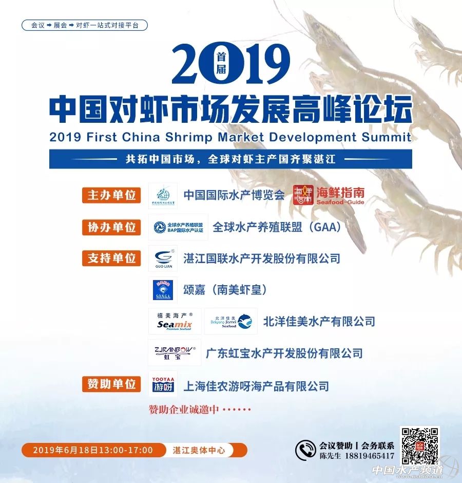 | 中國水產(chǎn)頻道報道, 策劃/主辦 中國國際水產(chǎn)博覽會組委會、海鮮指南(seafood-guide) 編輯部 2019首屆中國對蝦市場發(fā)展高峰論壇 共拓中國市場,全球?qū)ξr主產(chǎn)國齊聚湛江 6月18日·中國湛江·奧林匹克體育中心 6月18日,中國·湛江,由中國國際水產(chǎn)博覽會組委會、《海鮮指南》編輯部共同主辦的 “2019首屆中國對蝦市場發(fā)展高峰論壇”即將盛大開啟! 全球?qū)ξr產(chǎn)量正處于穩(wěn)步增長時期,預計2019年全球?qū)ξr產(chǎn)量將達到475萬噸,年均增長率達到5.7%。到2020年,全球?qū)ξr產(chǎn)量將突破500萬噸,世界對蝦產(chǎn)地和消費市場的新格局正在形成。 同時,經(jīng)過多年消費市場的發(fā)展,中國已經(jīng)是全球第一大對蝦消費國,蝦產(chǎn)品的凈進口國。更重要的是,中國新一代消費群體的壯大,讓蝦產(chǎn)品在中國的需求量具有無限想象空間。厄瓜多爾、越南、印度、泰國、印尼、馬來西亞、沙特、秘魯?shù)葘ξr主產(chǎn)國紛紛發(fā)力中國市場。越來越多形式新穎、品牌多樣的蝦產(chǎn)品通過各種渠道來到中國市場。 湛江,中國對蝦之都,中國對蝦深加工產(chǎn)業(yè)的聚集地。這里有全國最集中的對蝦加工廠,規(guī)模排名前列的對蝦進口商和經(jīng)銷商。從出口到內(nèi)銷、從資源型到渠道型,傳統(tǒng)的國內(nèi)對蝦企業(yè)正處于產(chǎn)業(yè)的轉折點。 正是在全球?qū)ξr市場風起云涌和中國對蝦消費機遇涌現(xiàn)的大背景下,我們6月18日在湛江籌備了“2019首屆中國對蝦市場發(fā)展高峰論壇”。邀請全球蝦產(chǎn)業(yè)代表齊聚湛江,共話產(chǎn)業(yè)發(fā)展的挑戰(zhàn)與機遇。 峰會將定向邀請來自全球蝦產(chǎn)品主產(chǎn)國的企業(yè)代表、供應商、進口商、經(jīng)銷商、知名餐飲企業(yè)采購、商超和電商新渠道采購代表、協(xié)會機構、政府海關等行業(yè)代表共聚一堂,深入分析目前全球各大產(chǎn)區(qū)蝦產(chǎn)業(yè)現(xiàn)狀,養(yǎng)殖端和消費端發(fā)展情況,對蝦行業(yè)的新增長點等眾多行業(yè)關注話題。 共拓中國市場,全球?qū)ξr主產(chǎn)國齊聚湛江!我們期待您的加入。 會議時間 6月18日 13:00-17:00 會議地點 湛江奧林匹克體育中心 主辦單位 中國國際水產(chǎn)博覽會組委會、《海鮮指南》編輯部 會議規(guī)模 300人 參會人員 本次會議采用邀請制和主動報名相結合的形式。參會人員涵蓋全球6大對蝦主產(chǎn)國的企業(yè)代表、供應商代表、中國市場進口商、知名餐飲企業(yè)采購、商超和電商新渠道采購代表、協(xié)會機構、政府海關等行業(yè)代表。 合作媒體 水產(chǎn)前沿 農(nóng)牧前沿 工業(yè)化水產(chǎn)圈 紅餐網(wǎng) (更多媒體誠邀中) 會議議程 部分擬邀單位(排名不分先后) 南美蝦皇 王牌 老船長 皇冠 Empagran 藍泰 歐瑪莎 桑塔 康菲瑪 帆船 鉆石 Luna 沙特國家水產(chǎn)養(yǎng)殖集團 秘魯ECO-ACUICOLA S.A.C 泰國利興冷凍食品 泰國皇家食品有限公司 越南明富 馬來西亞必樂鮮 湛江國聯(lián)水產(chǎn)開發(fā)股份有限公司 恒興集團 廣東虹寶水產(chǎn)開發(fā)股份有限公司 湛江港洋水產(chǎn)有限公司 福建海魂水產(chǎn)有限公司 通威集團 武漢三良集團有限公司 諾勝國際 良品行(上海)供應鏈服務有限公司 廣東環(huán)球水產(chǎn)食品有限公司 福清朝輝水產(chǎn)食品有限公司 茂名新洲海產(chǎn)有限公司 北海洪昌水產(chǎn)有限公司 北海宏遠水產(chǎn)食品有限公司 北海宏泰水產(chǎn)有限公司 北海寬利水產(chǎn)有限公司 湛江龍威水產(chǎn)實業(yè)有限公司 亞洲海產(chǎn)(湛江)有限公司 濟南大平水產(chǎn) 浙江藍雪食品有限公司 上海迎浩緣貿(mào)易有限公司 沈陽鮮美達海產(chǎn)有限公司 山東云航貿(mào)易有限公司 浙江大洋水產(chǎn)有限公司 廣東金航食品有限公司 北京優(yōu)頂特貿(mào)易有限公司 華廚聯(lián)盟 瀚通食品有限公司 武漢鮮美達供應鏈有限公司 青島怡雅菲進出口有限公司 北京二商集團有限責任公司 順景發(fā)集團 上海海天下食品有限公司 上海卜蜂貿(mào)易有限公司 成都裕隆達商貿(mào)有限公司 正大食品企業(yè)(上海)有限公司 青島美廚食品有限公司 山東海運國際貿(mào)易有限公司 泉州宏城水產(chǎn) 國藥嘉遠(北京)貿(mào)易有限公司 福建宏升兄弟 廣州鴻煒鮮水產(chǎn)有限公司 青島盛世海豐貿(mào)易有限公司 青島米洛克 青島東海永旺貿(mào)易有限公司 渤海水產(chǎn)有限責任公司 唐山曹妃甸惠通水產(chǎn)科技有限公司 青島國星食品股份有限公司 極鮮網(wǎng) 青島愛源食品有限公司 湛江恒興水產(chǎn)科技有限公司 湛江東洸水產(chǎn)有限公司 廣東君海水產(chǎn)股份有限公司 廣東國美水產(chǎn)食品有限公司 湛江市海岸水產(chǎn)有限公司 湛江市和鑫水產(chǎn)有限公司 湛江恒發(fā)水產(chǎn)有限公司 亞洲海產(chǎn)(湛江)有限公司 湛江市海魂水產(chǎn)有限公司 廣東佰大科技股份有限公司 廣東環(huán)球水產(chǎn)食品有限公司 湛江昌泰食品有限公司 湛江龍威水產(chǎn)實業(yè)有限公司 廣東海豐水產(chǎn)有限公司 品先(湛江)水產(chǎn)有限公司 山東國鵬水產(chǎn)有限公司 廣東泰聯(lián)海洋食品有限公司 泰國金海源國際漁業(yè)有限公司 泰國裕寧冷凍食品有限公司 泰國興富水產(ch