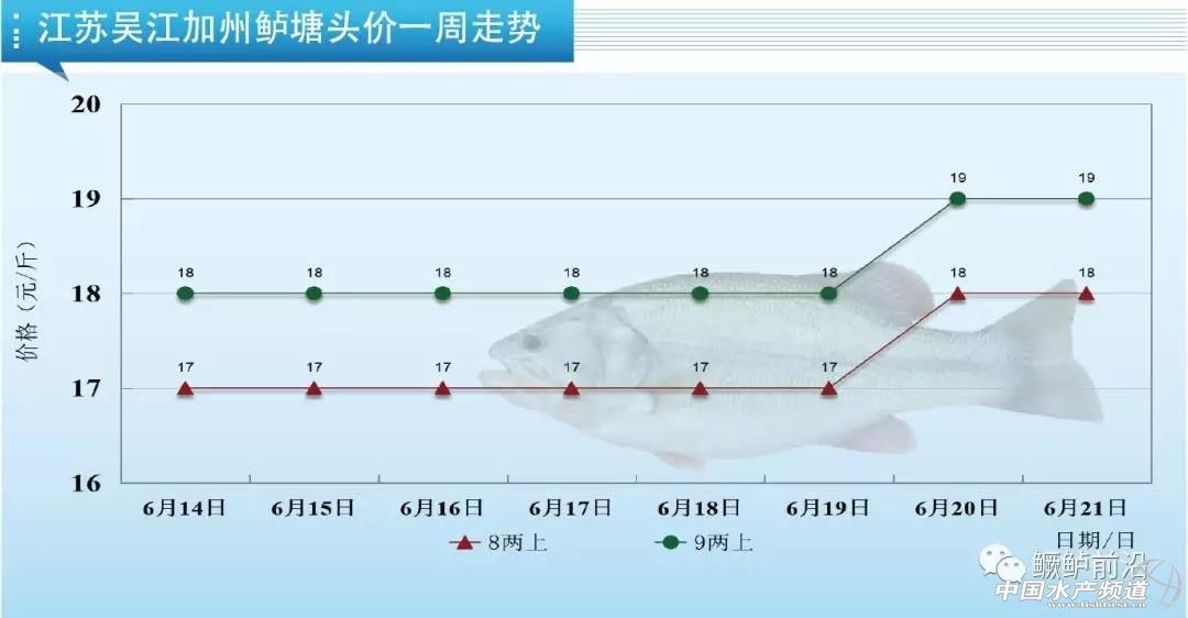 文/圖 鱖鱸前沿 李曉欣 中國水產頻道原創報道,過去一周,各產區加州鱸塘頭價呈穩中有升態勢,其中江蘇吳江魚價一周內上漲了1元/斤,其他產區魚價基本維穩。相比5月,本月魚價漲幅有所放緩,多地魚價已持穩了9-22天不等,可喜的是,各地魚價均比去年升高,漲幅達1-4.5元/斤不等。 據佛山當地加州鱸養戶反映,近期高溫多雨天氣,鱸魚苗出現爛嘴爛尾現象較為嚴重,很多塘口一天損耗幾十上百條,需要多加防范。 廣東佛山 本周佛山魚價維持在8兩上20元/斤左右,1斤上20.5元/斤,實際成交價看8兩上比例和質量而定。現在存塘舊魚較多的南海沙頭區域養戶出魚意愿依然不高,部分流通商選擇到江蘇地區拉魚,預計短期內魚價較為穩定。 浙江湖州 湖州當地存塘已經很少,現在基本很少人出魚,魚價維穩在8兩上16.5-17元/斤,統貨14.5-15/斤,流通商多到江蘇吳江地區拉魚。 江蘇吳江 本周吳江各規格魚價上漲了1元/斤,今天8兩上報價18元/斤,1斤上19元/斤。目前吳江當地大規格鱸魚緊缺,北京、天津等北方市場訂單需求得不到滿足,收購商為刺激養戶出魚而上調了魚價。 四川成都 成都區域老口鱸魚存塘已經不多,本周9兩上維持在20元/斤左右,這個價格持穩已久。由于目前價格達到部分養殖戶心理預期,部分養戶準備給新魚苗分塘、過塘,出魚意愿較高,預計短期內魚價波動不大。 湖北武漢 武漢9兩上鱸魚報價18.5元/斤左右,價格一周持穩。湖北本地較為缺魚,部分流通商到江蘇地區拉魚供應市場。 湖南華容 本周華容9兩上鱸魚價格維持在18元/斤,由于近期高溫出魚容易應激,加上看好后市行情,當地部分還有存塘舊魚的養戶惜售待價,整體出魚量不大。 廣西南寧 本周南寧1斤上加州鱸維持在19.5-20.5元/斤,當地達上市規格的鱸魚還有2-3成,由于高溫應激較大,部分養戶出魚積極性下降,出魚意愿不大。 注:上述價格及行情分析僅供參考,市場有風險,入市需謹慎。 |