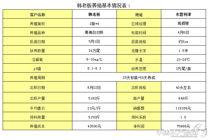 | 中國水產頻道原創報道, 養好蝦,需要把握“七個好” 文/圖 天邦食品股份有限公司 姚輝慧 晏雨微 引言:東營市利津縣治河村韓老板,率先在北方開啟南美白對蝦“溫棚+外塘”養殖模式,全程配合天邦七好全熟化對蝦配合飼料,從標苗到養成,僅70余天,外塘養殖50天,對蝦達到40余頭的上市規格,提前一個月左右出蝦,成功避開外塘出蝦高峰期,賣價好,效益高。同時可以放第二茬苗,實現外塘年產兩茬蝦! 創新,“溫棚+外塘”模式讓他大獲成功 山東省東營市利津縣緊鄰黃河入海口,淡水資源豐富,水產行業起步較早,早期以淡水魚養殖為主。近幾年淡水魚養殖進入微利時代,魚塘逐漸都改造成了蝦塘,對蝦逐漸成為了當地的主要養殖對象。 北方對蝦外塘養殖受限于氣溫及水溫的影響,往往到9月末才能出蝦上市,每年只能養一茬,怎么樣才能突破這種限制,實現養殖效率和利潤最大化呢? 擁有多年對蝦養殖經驗的韓老板通過不斷的鉆研和嘗試,借鑒南方“溫棚模式”,因地制宜地創新了北方“溫棚+外塘”養殖模式,完美契合北方氣候和外塘蝦上市規律,實現一年出兩茬蝦,大大提高了池塘養殖效率,也提升了養殖經濟效益。 韓老板創新的這套北方“溫棚+外塘”養殖模式,即是4月初采用溫棚提溫標苗,5月水溫合適時到外塘放苗,此時溫棚標好的蝦苗已經長至5公分左右,標粗苗僅需在外塘養殖50-60天即可達到上市規格。同時在第一茬蝦上市的前20天,溫棚里開始準備標第二茬蝦苗,當第一茬外塘蝦出完后即6月底,溫棚里的蝦苗也已經標好,可以放第二茬苗,養殖兩個月到9月初又可以出第二茬蝦。 視頻:出蝦 韓老板和天邦七好技術人員姚輝慧合影 出第一茬蝦的繁忙景象 韓老板從今年4月6日開始在溫棚里標苗,標苗25天,蝦苗長至5公分左右投放外塘,養殖50天,4個池塘共用料5150斤,出蝦5182斤。提前一個月出蝦,避開了外塘蝦集中上市時間,40頭蝦也賣上了23元的好價錢。而溫棚里標粗的第二茬蝦苗也即將可以投放池塘開始第二輪的養殖,韓老板感覺心里踏實而喜悅。 養好蝦,需要把握“七個好” 過去的養殖觀念認為,放土苗、吃便宜料成本低,風險小,賠的少。靠天吃飯、不增氧、不改底,大家害怕失敗,投苗后不投喂飼料、甚至有放苗后觀察2個月,發現有蝦存活再投喂的極端情況。隨著科學養殖觀念的普及,養殖戶開始注重清塘、改底、調水、增氧,在飼料上也開始選擇更高端的飼料。韓老板是天邦七好全熟化飼料的忠實客戶,而天邦七好全熟化蝦料也確為韓老板成功創新北方“溫棚+外塘”模式提供了全面的營養保障。 對于養殖的成功,韓老板將之總結為以下“七個好”: 1、底好:放苗之前、清塘之后用改底產品處理池塘底質,進水后再用EM菌和藻種肥水,使池塘保持菌藻平衡狀態,消毒解毒處理完這一切后才開始放蝦苗。 2、苗好:好苗是決定養殖開好頭也是最關鍵的一步,韓老板選擇“普利茂”新一代優質高抗苗,抗逆性強,成活率高,在土塘養殖中表現尤為突出。 3、料好:韓老板全程選擇投喂天邦七好全熟化蝦料,前期喂48個蛋白的“蝦皇金”蝦苗標粗專用料,保證了今年蝦苗的高成活率,整體成活率達到了9成以上,中期投喂44個蛋白的“蝦樂高”P系列破碎料,后期喂“蝦樂多”1號(40蛋白)、2號(40蛋白)飼料。通過合理的投喂策略,在前期水溫低的情況下,全程飼料系數僅為1.0,對蝦體色好、活力強。 4、水質好:韓老板養殖調水的秘訣就是用天邦七好的EM一級菌種發酵后,每隔七天進行活菌外潑調水,隔五天用活菌拌料一次,水質長期保持穩定,水好蝦自然也好。 5、溶氧好:在一個不到5畝的蝦塘里,韓老板安置了兩臺3kW的葉輪式增氧機,而且每個池子都配備了底部納米增氧裝置,之所以這么做,是因為韓老板知道只有保障了充足的溶氧,蝦才能攝食好、消化率高,長的好、不犯病。 6、管理好:全程監控,高老板采用現代化的設備實時監測水中溫度、溶氧、pH值等指標,并且定期檢測氨氮、亞鹽和弧菌含量,根據天氣變化進行減料、停料、抗應激、增氧等管理,全方位保障對蝦養殖環境處于最佳狀態。 7、收成好:正因為做好了前面的這些工作,韓老板才能從6月22號開始出第一茬蝦,比外塘蝦上市高峰期早一個月,40頭蝦也賣上了23元/斤的好價錢。 |