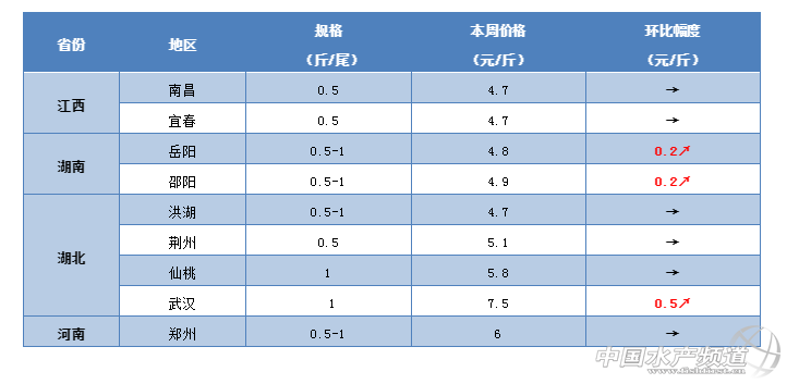 | 中國水產頻道原創報道, 上漲已成定局!長沙水渡河8兩鯽魚突破5.5元/斤,常德漲0.2元;武漢白沙洲賣到7.5元/斤,漲0.5元/斤;江蘇漲了0.2-0.4元/斤,泰州地區全線突破6元/斤;甘肅蘭州賣8.5元/斤,漲了1元/斤;遼寧沈陽賣到7元/斤,最高漲0.7元/斤。 文/ 水產前沿 鄭鵬飛 一周要聞 本周鯽魚整體流通順暢,多地行情上漲,大魚存塘魚不多,近期行情仍然看漲。據了解,目前廣東江門地區7兩的鯽魚塘頭賣到7.4元/斤,肇慶地區1斤的鯽魚賣9元/斤,梅州地區穩定在8-8.5元/斤,廣西桂林地區鯽魚還是維持在5.3-5.8元/斤,來賓地區最新塘頭價7.5元/斤,中山地區1斤的鯽魚塘頭價賣到7.8元/斤,整體上穩中有漲。江蘇泰州地區9兩的鯽魚賣8.1-8.5元/斤,8兩的賣7.4-7.6元/斤,7兩賣6.8-7元/斤,半斤的也可以賣到6.2元/斤,整體突破6元大關;據養殖戶介紹,7月4日晚武漢白沙洲市場鯽魚也出現爛市,價格下滑1元/斤,8兩的鯽魚也只賣到7塊,不過今天鯽魚價格又上漲了0.5元/斤,目前8兩的鯽魚賣7.5元/斤;目前湖南常德地區鯽魚塘頭價上漲0.2元/斤,長沙水渡河8兩以上的鯽魚也已突破5.5元/斤,魚很好賣,養殖戶表示價格上漲已成定局。目前,遼寧沈陽地區8兩以上的鯽魚可以賣到7元/斤,最高上漲0.7元/斤。甘肅蘭州水產市場鯽魚最新報價8.5元/斤,上漲1元/斤。 小暑大暑,上蒸下煮。除了高溫的襲擊,近期部分地區出現強對流天氣,7月6日江蘇徐州地區就遭受了冰雹襲擊。未來南方11個省份將迎來最大范圍降雨過程,局部有暴雨,提醒大家出門帶傘并注意安全。 本周行情 華南地區 本周華南地區的鯽魚行情整體保持穩定,市場流通順暢,行情看好。據養殖戶和流通商介紹,目前江門地區鯽魚價格很好,7兩的鯽魚塘頭可以賣到7.4元/斤;肇慶地區1斤的鯽魚塘頭價維持在9元/斤,暫時沒有明顯變化;梅州地區鯽魚塘頭價穩定在8-8.5元/斤;廣西桂林地區鯽魚還是維持在5.3-5.8元/斤;來賓地區最新塘頭價7.5元/斤,價格較之前有所下滑;據流通商反映,目前中山地區的鯽魚行情不錯,目前1斤的鯽魚塘頭價賣到7.8元/斤,7兩的可以賣到7.6元/斤。俗話說,小暑大暑,上蒸下煮。據中國氣象局消息,受到強對流天氣影響,7月7-8日廣西和廣東部分地區有短時強降水,有部分地區還遭遇大風和冰雹天氣襲擊,提醒大家多注意安全。 華中地區 本周華中地區的鯽魚行情整體上穩中有漲,部分市場曾出現爛市情況。據了解,最近一周湖北武漢白沙洲市場的魚價行情都不好。周四(7月4日)晚上8點多,白沙洲市場鯽魚出現爛市,市場被魚車圍地水泄不通,8兩的鯽魚也只賣到7塊,下滑1元/斤,4兩的賣5塊,3斤的白鰱沒人要,9兩的武昌魚最低只賣3.5元/斤,小草魚根本賣不動,4斤的草魚賣4.2元/斤,5斤的賣4.8-5.3元/斤。不過,今天白沙洲的鯽魚價格又再次上漲了0.5元/斤,目前8兩的鯽魚賣到7.5元/斤;從養殖戶了解到,近期江西樟樹地區連續陰雨天氣,市場需求量不大,什么魚都不好賣,目前鯽魚塘頭價還是老樣子;湖北仙桃地區半斤的鯽魚菜市場賣7.5元/斤,塘頭價基本穩定;隨州地區鯽魚塘頭價賣5.5元/斤,保持穩定;據養殖戶介紹,目前湖南常德地區鯽魚塘頭價上漲0.2元/斤,長沙水渡河8兩以上的鯽魚已突破5.5元/斤,魚很好賣,價格上漲已成定局。 華東地區 本周華東地區鯽魚行情整體呈現上漲趨勢,存塘魚不多,短期內行情繼續看好。據了解,目前江蘇泰州地區9兩的鯽魚賣8.1-8.5元/斤,8兩的賣7.4-7.6元/斤,7兩賣6.8-7元/斤,半斤的也可以賣到6.2元/斤,整體突破6元大關;有養殖戶表示,最近淮安地區的鯽魚價格還不錯,尤其花鰱的價很好,4斤的花鰱可以賣到7元/斤;最近福建地區鯽魚行情整體上保持穩定,近期三明地區鯽魚行情略有好轉,塘頭價賣6-6.2元/斤。 其他地區 |