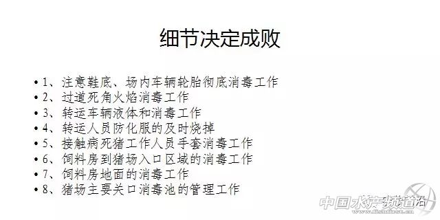 中國水產頻道綜合整理報道, 做好這些細節,防住“非瘟”并不難 文/農牧前沿實習編輯朱敬強綜合整理 編者的話 7月11日,福建、廣東、山東等地傳來豬價破10的好消息。豬價高企無疑讓養豬人們都萌生一股養豬地沖動,但當下這個大環境下,如何做好非瘟防控,如何開始復養成為業界最為關注的話題,農牧前沿特別收集整理相關內容,以饗讀者。 相關閱讀:豬價破10!復養還是再等等?他們已經開始行動…… 近日,CPICP全國防控非瘟經驗交流群微課堂舉辦了“如何做好防控非瘟,第一道防線應如何守”的研討會,群主姜樹林博士特邀廣州豬個靚生物科技有限公司曹松嶸總經理與來自新疆的唐朝先生以切身經歷和體會,分享最實際,最有效的一線防瘟經驗。(以下內容整理自群交流,未經本人核對) “五度管理”防控非瘟 唐朝先生從“五度管理”的角度講述了非瘟的防控重點是提高豬群健康程度,闡述了健康程度提高豬群抵抗非瘟的重要性。 唐朝認為做好非洲豬瘟防控主要是消滅傳染源、切斷傳播途徑、保護易感動物。對于如何保護易感動物,唐朝認為:生理決定病理,生理舒適度,環境中病毒載量決定發病率。豬群的生理舒適度,豬群整體健康度,對于任何疫病的影響都是積極的。盡管現階段的非洲豬瘟非常殘暴,不講道理,但是(豬群)整體的健康度,依然可以提高豬群的感染閥值,可以降低豬群的感染概率。保護易感動物,首先要做好豬群的“五度管理”,即空氣清新度、飲食清潔度、溫度、濕度、密度等五個方面的管理與改善,就是為豬只提供一個干燥涼爽通風的環境、清潔均衡的日糧、更低的飼養密度滿足豬只的生理需求,幫助豬只耐過。 1、空氣清新度 新鮮的空氣中富含大量的氧,豬的機體大概只能儲存不到十分鐘的供氧量,如果不能持續供氧,機體就會死亡。氧是維持機體免疫功能活力的關鍵物質。充足供氧的條件下,機體的新陳代謝才能正常進行,才能保證免疫系統的正常運行,缺氧各個器官的功能和免疫力就會下降,就會降低對病原的抵御能力;缺氧就會造成機體的器質性病變,這種病變是由于免疫系統長期缺氧,導致功能性障礙造成的。因此,空氣是豬只最重要的物質,也是最重要的營養。 2、飲水清潔度 水分是細胞外物質的重要組成部分,又是細胞內物質代謝的主要媒介。新陳代謝無一不是在水中進行的,沒有水分也就沒有生命。非洲豬瘟病毒可以輕易通過飲水經由口腔傳播,并且水中引起感染所需的病毒水平極低。近期南方的疫情失控,與雨水橫流關系密切。保證飲用水的清潔,不攜帶非洲豬瘟病毒,是防控的重中之重。 3、溫度 對于恒溫動物來說,適宜的溫度,對豬只是至關重要的,是豬只新陳代謝與免疫系統正常的基礎。夏季高溫被認為是非洲豬瘟高發的主要推手。夏季高溫條件下對豬群不利,豬群處于過敏性體質,遇見非洲豬瘟的超敏反應,會產生更加強烈的病理變化。因此,夏季非洲豬瘟高發,豬群整體耐過率降低,耐過豬復發率增加,拔牙式清除難度增加。 4、濕度 生理決定病理。圈舍濕度高會嚴重影響豬只的健康度,減少豬只散熱,造成豬只內分泌失調。濕度高,特別是南方各省,也是非洲豬瘟疫情高發的主要推手。圈舍濕度大,非洲豬瘟更容易存活,更容易附著在器具、車輛上傳播。科學測定,當空氣濕度高于65%或低于38%時,病菌繁殖滋生快,當相對濕度在45%-55%時,病菌死亡較快。 5、密度 密度越低,豬只的舒適度增加,病毒傳播速度減慢。降低密度本質上就是減少豬場的規模,從而減少了各種人來人往,車來車往,豬來豬往,因此減少豬場的往來接觸與交叉傳染的概率。 疫病是病原與致病條件共同作用發生。在病原與宿主達成穩態的情況下,控制致病條件同樣能控制疫病的發生。目前非洲豬瘟這樣強橫的情況下,控制致病條件,滿足生理舒適的人工干預方法,也能提高豬群整體的耐受性,達到降低感染率,發病率,死亡率的目的。 豬是非洲豬瘟的唯一宿主,隨著時間推移,病毒毒力減弱,豬只耐受性增加,非洲豬瘟病毒與豬終將達成穩態。 沖動是魔鬼 隨后,廣州豬個靚生物科技有限公司曹松嶸總經理鑒于最近較多發生的疑是或者實驗室確診案例,介紹了診斷的相關內容。臨床快速診斷的要點如下: 曹松嶸表示在實際臨床接到咨詢的時候,以上臨床癥狀基本上出現一段時間,處理起來相當困難,此時可能病原已經在豬場內部傳播開了。根據處理失敗案例的經驗總結就是一句話:沖動是魔鬼! 必須弄明白什么該做,什么不該做,同時要立刻考慮怎么做!避免做的越多錯的也越多! 曹松嶸提到,在沒有想明白的時候,千萬不要隨意移動發病豬群,不能人員交叉操作!總結所有失敗案例,幾乎沒有一個豬場在處理病死豬的過程中真正做到人員不交叉的這一個要點。同時總結成功案例,無一例外,發現一個共同的特點,確保了處理病死豬過程中,避免處理病死豬人員和正常飼養人員的工作相互交叉過程!此時此刻,我們一定要立刻改變慣性工作節奏;此時此刻,一定要明白,工作的重點不再是在養豬;此時此刻,我們一定要明白我們正在處理一場生化危機。曹經理表示他發現絕大部分豬場,此時此刻,還念念不忘一件事情,還是將喂好豬作為工作的重心。因此,人力資源需要做果斷的調整工作。 “很多人問我,處理效果不理想是為什么,我只問一句話,有沒有聘請外部人員負責處理果斷淘汰的