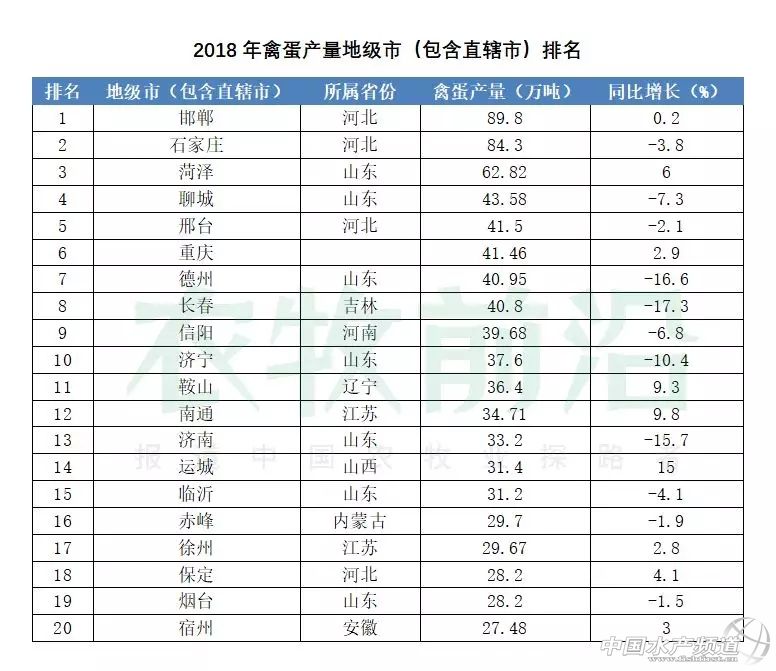 文/圖 農牧前沿實習編輯 朱敬強 綜合整理 繼全國各省的肉蛋產量排名公布后,小編又為大家帶來了地級市的肉蛋產量前二十名排名情況,有圖有表有視頻一應俱全,一定有你需要的!地級市層次的肉蛋產量排名可以更精確地為大家提供指導依據,趕快收藏yo~ 注:數據來源于各地統計局公布的《2018年政府國民經濟與社會發展統計公告》,排名城市以有公布數據的地級市為主,統計時間截止于2018年年底,產量單位均為萬噸。 豬肉,重慶一騎絕塵 重慶作為占地面積最大的直轄市,豬肉產量鶴立雞群是情理之中~ 其他排名于前二十的地級市則主要屬于中南地區(江西、廣西、湖南、廣東等)、西南地區(四川、貴州)和華東地區(河北、山東)的省份,這也與省級分布結果相符合。大家可以自行想象一下分布情況。 自行想象可能比較困難,小編為大家準備了分布地圖哇,看過來~ 但是總體來說除重慶遙遙領先以外,其他市產量之間并沒有拉開較大的差距,競爭不是很激烈啊!在產量前二十的地級市中,岳陽、宜春、邯鄲和石家莊相較2017年產量出現不同程度的下降,有待努力增產呀。 禽肉,多市顯著增產 在禽肉產量方面,福建南平市也是處于遙遙領先的地位,第二名之后各市之間的差距就相對和緩了。除第20名德陽市屬四川省以外,前二十的地級市全部屬沿南海的廣東和福建以及環渤海的遼寧、山東、河北。 噔噔噔噔!有圖為證↓ 值得我們注意的是,地級市中有很多相較2017年有增產,特別是鞍山市同比增長17.8%!雖然只有石家莊、承德分別下降了11.8%、6%,但減產量還是很高的…… 禽蛋,各市群雄逐鹿 邯鄲、石家莊、菏澤在禽蛋產量上可謂競相角逐,雖最后還是要分個一二三,但產量均超過60萬噸。 一起看一下地區分布,排名前二十地級市大多屬環渤海省份,山東河北居多。 地圖在這里↓ |
