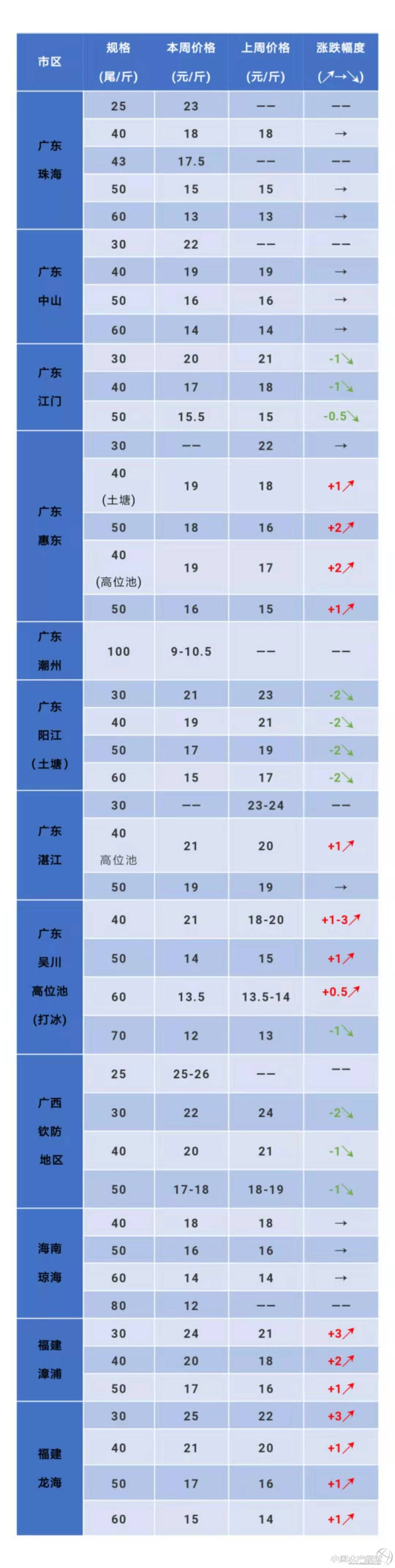 | 中國水產頻道原創報道, 7月24日國內白蝦主產區價格播報與行情分析 文/水產前沿 植銀素 【本欄目由《水產前沿》、“西瑞動保”聯合制定,助各養殖朋友,養得好、賣得好!】 本周行情 本周,國內蝦價終于再迎來好消息!漲幅最明顯的是福建、山東以及江浙一帶。目前,福建地區存塘蝦不多了,所以價格上漲較快,漲幅達到1-3元/斤。山東地區最高也漲了3元/斤,但是市場大蝦并不多,外塘蝦多是因為發病才賣掉,預計短期內價格仍有波動。江浙一帶整體供應量不如之前,蝦價上漲明顯,近兩周都呈現明顯上漲趨勢。 廣東地區蝦價漲跌互現,陽江地區由于趕第二造蝦,近期出蝦較集中,所以蝦價下跌明顯,存塘都以中大蝦為主,廣西欽防地區蝦價下跌原因與陽江相似,據筆者了解,該地區存塘蝦在25-35頭,而且產量較大,預計短期內價格上漲較難。珠三角地區在本周價格波動不大,對于目前的養殖情況來講,也不算壞事。 【注:蝦價行情主要取決于市場供需,具體價格以售貨渠道和品質為主要考量,本報價僅供養殖戶參考!】 國內部分產區蝦價分析 華南地區 珠三角:25條23元/斤,30條22元/斤,40條18-19元/斤,50條15-16元/斤,60條13-14元/斤。本周珠三角地區蝦價對比上周保持平穩狀態,收購商表示今天出的蝦質良并不是很好,蝦價很難給高,但是也有微漲趨勢。養殖戶表示這幾天白撞雨給養殖帶來的難度加大。整體行情穩定。 惠東:40條19元/斤,50條17元/斤,高位池40條19元/斤,50條16元/斤。本周惠州地區蝦價微升,但是白便問題仍比較嚴重。 陽江:土塘蝦價30條21元/斤,40頭19元/斤,50條17元/斤,60條15元/斤。本周陽江地區蝦價再次下滑,對比上周同期均跌2元/斤,系因當地養殖戶正集中出第一造蝦,而且存塘以中大蝦為主,大約還有3成存量,很多養殖戶已經標苗了。 湛江:高位池40條21元/斤,50條19元/斤。吳川高位池(打冰):40條21元/斤,50條14元/斤。本周吳川地區蝦價有所上升,但是整體養殖情況不理想,發病的蝦都要及時賣掉,止損。 廣西:欽防:25條25-26元/斤,30條22元/斤,40條20元/斤,50條17-18元/斤。近期廣西地區活蝦交易量增多,養殖戶出蝦較為集中,存塘蝦以20-35頭的大規格為主,價格對比上周下滑明顯。 海南:40條18元/斤,50條16元/斤,60條14元/斤。本周海南價格整體維穩。 福建:漳浦:30條24元/斤,40條20元/斤,50條17元/斤。龍海:30條25元/斤,40條21元/斤,50條17元/斤,60條15元/斤。本周福建地區蝦價上漲明顯,漲幅達到1-3元/斤,最近白便仍是困擾蝦農的主要障礙,但是因為存塘蝦不多了,所以價格上漲快。 華東地區 江蘇如東:40條23.5元/斤,50頭20-21元/斤。如東地區小棚蝦已經結束,少量外塘蝦已經開始上市,而且價格較高。鹽城地區蝦價也有明顯上漲。 浙江蕭山:40條25元/斤,50條23元/斤。浙江地區蝦價最近蝦價基本保持平穩,后期隨著外塘養殖戶出蝦,市場價格或將出現小幅下滑。 北方地區 山東日照:20條28元/斤,30條23元/斤,40條19元/斤。本周山東地區蝦價終于迎來上漲,目前主要以外塘蝦為主,價格與工廠化蝦價相差不多,本周漲幅達到1-3元/斤,但也屬于正常波動。 天津:20條26元/斤,30條23元/斤,40條17元/斤。本周天津地區蝦價下降明顯,由于近期出蝦較集中,明顯供大于求,業內人士預計短期內還會下調。 |
