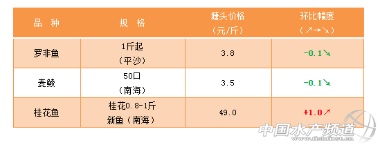 8月2日珠三角羅非魚、麥鯪、桂花魚價格播報