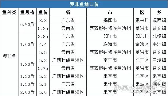華南地區:華南地區羅非魚受高溫天氣影響,鏈球菌疾病較多,養殖戶出魚積極,加工廠訂單減少,惠州、珠海、廣西來賓地區價格均呈下跌趨勢,價格較上周下跌0.2-0.3元/斤,揭陽地區價格與上周持平。