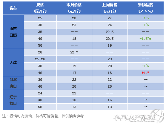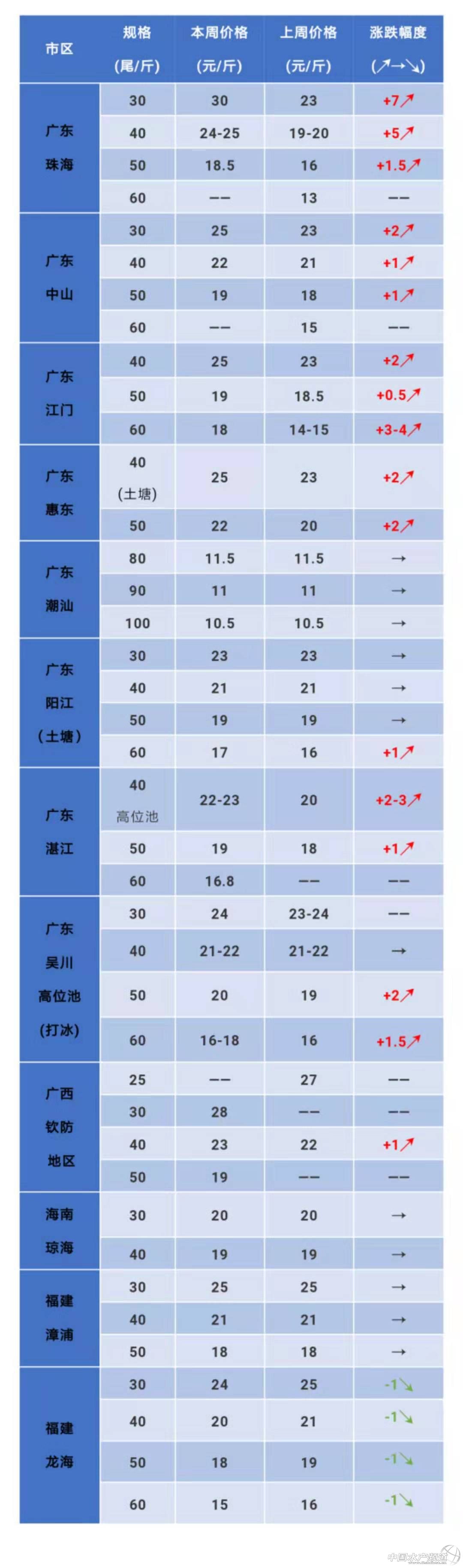 | 中國水產頻道原創報道, 文/水產前沿 植銀素 【本欄目由《水產前沿》、“西瑞動!甭摵现贫ǎ黟B殖朋友,養得好、賣得好!】 本周行情 本周珠三角地區蝦價大漲,尤其是珠海地區漲幅最高達到7元/斤,大蝦緊缺,30頭的蝦浸籠價達到30元/斤,處于近期國內蝦價高位!中山、江門也不例外,漲幅達到2-3元/斤;輺|養殖戶表示,上次臺風利奇馬造成江浙、山東地區養殖受到嚴重災害,但也讓其他地區蝦價漲了起來,近期已經上漲4元/斤。相比南方地區蝦價飄紅,北方地區卻不太理想,本周北方多地蝦價維穩,或浮動1-2元/斤。 據國內某平臺消息,中國正在制定越來越嚴格的質量和產品來源機制,從2019年10月1日起,進口到中國的蝦產品必須有出口證明。因此,蝦企業需要關注質量,原產地和法規的新要求,包裝標準,商品標簽和可持續出口的區域條形碼以及增加附加值。對于蝦產品,為了提高競爭力,蝦農需要以ASC和BAP等國際市場質量標準提高“清潔蝦”的目標,才可進入中國的優質海產品分銷系統。 國內部分產區蝦價分析 華南地區 珠三角:30條25-30元/斤,40條22-25元/斤,50條18.5-19元/斤。本周珠三角地區蝦價整體保持穩中有漲,近期成品蝦較少,尤其是優質大蝦緊缺,珠海地區30頭大蝦今日浸籠價格達到30元/斤,對比上周同期上漲7元/斤!45頭質量較好的蝦也有23元/斤。中山、江門均漲2-3元/斤。 惠東:40條25元/斤,50條22元/斤。本周惠州地區蝦價對比上周同期跟漲2元/斤,養殖戶表示臺風利奇馬影響后,該地蝦價上漲達到4元/斤。 陽江:土塘蝦價30條23元/斤,40頭21元/斤,50條19元/斤,60條16元/斤。本周陽江地區蝦價維持穩定,夏季出蝦主要以土塘為主,高位池較少,而且今年空塘較多。養殖戶表示體色漂亮、活力好的蝦能賣高1元左右,目前存塘的大蝦還有2-3成,中小規格蝦較多。 湛江:高位池40條22-23元/斤,50條19元/斤,60條16.8元/斤。吳川高位池(打冰):30條24元/斤,40條21-22元/斤, 50條20元/斤,60條16-18元/斤。本周湛江、吳川地區蝦價有小幅上漲,整體行情較為穩定。 廣西:欽防:30條28元/斤,40條23元/斤,50條19元/斤,近期廣西地區活蝦交易減少,大蝦已經不多,價格飆漲快,投苗也有序進行中。 海南:30條20元/斤,40條19元/斤。本周海南價格整體行情穩定,但是海南地區受環保影響較大,預計海水蝦蝦供應會越來越少了。 福建:漳浦:30條25元/斤,40條21元/斤,50條18元/斤。龍海:30條24元/斤,40條20元/斤,50條18元/斤,60條15元/斤。本周福建地區出蝦較少,交易量一般,整體行情較為穩定。 華東地區 江蘇:如東地區30條24-25元/斤,40條23元/斤,50條20元/斤。近期外塘蝦上市速度加快,價格有所下調,養殖情況則不如去年,但是整體行情優于去年。小棚蝦早放苗的已經接近一個月。鹽城地區40頭20.5元/斤,50頭19元/斤,60有16元/斤,近期活蝦供應較少,整體行情穩定。今年的蝦價對比去年同期高出2-3元錢,下半年養殖戶投苗熱情較高。 浙江蕭山:40條22元/斤,50條20元/斤。本周蕭山地區蝦價下滑明顯,降幅達到2元/斤,臺風過后,蝦子應激爆發紅體病,養殖戶著急出蝦止損,加上正常出蝦量,供過于求導致價格下跌。 北方地區 山東日照:25條26元/斤,30條23元/斤,40條18元/斤。本周山東地區蝦價穩中有降,降幅達到1-2元,但在正常浮動范圍之內。目前主要以外塘蝦為主,但是出蝦較少,臨近中秋節,北方地區出蝦量漸增,后期預計上漲空間不大。 天津:20條22.7元/斤,30條19.2元/斤,40條17元/斤。天津地區本周蝦價對比上周同期有所下降,但是這兩天有上漲趨勢,大蝦供應不足,未來有漲價的可能。 遼寧:24條22元/斤,40條16元/斤,50條13元/斤。本周營口地區蝦價較為平穩,整體供需較為平衡。 注:行情時有波動、價格可能偏差、僅供讀者參考 養殖小貼士 高密度對蝦養殖模式中隨著放苗密度的增加,天然的餌料已經不能滿足對蝦的生長需要,很多養殖戶仍然在對蝦長到3cm之前都在養水,造成對蝦營養缺乏,身體虛弱,抗病力弱,容易發病。 在對蝦養殖前期,根據對蝦放苗密度,及時觀察對蝦的攝食及胃腸食物情況,隨著生長慢慢增加前期對蝦所需的營養。 及時補鈣既可以改善對蝦的攝食,又能保證蝦苗的營養需要,提高對蝦活力,增強免疫力,減少發病的幾率,獲得良好的經濟效益。 吃料慢的問題剖析及解決方案 1.腸胃病 腸炎、白便都屬于腸胃病,一般而言腸炎是細菌病,也可能是肝臟受損,水體環境和水體環境帶有細菌和霉菌都很容易引起對蝦得腸胃疾病。往往腸炎或白便的情況下,對肝臟的排毒也是巨大的。所以吃料慢也是必然的。建議:提前預防,定期投喂:乳酸菌、楊樹花等調理腸道。 2.寄生蟲病 蝦的寄生蟲主要有三種:纖毛蟲、孢子蟲、甲殼類原蟲。 纖毛蟲與甲殼類原蟲都是寄生在蝦的體表、附肢及鰓上。 孢子蟲主要是寄生在蝦的肌肉里,肉眼看,蝦的后半身肌肉一直都是發白的,這寄生蟲很少見,也很難根治,有的話,建議拌驅蟲的藥,六黃潑水也有效。 3.缺氧 缺氧一般在中后期較容易出現,早期剛放苗時,養殖戶沒注意開增氧機也會出現缺氧浮頭的現象。一般缺氧后蝦軟殼,殼脫后硬不了。輕度缺氧是步足關節處及眼睛發紅。 4.物理因素突變 |