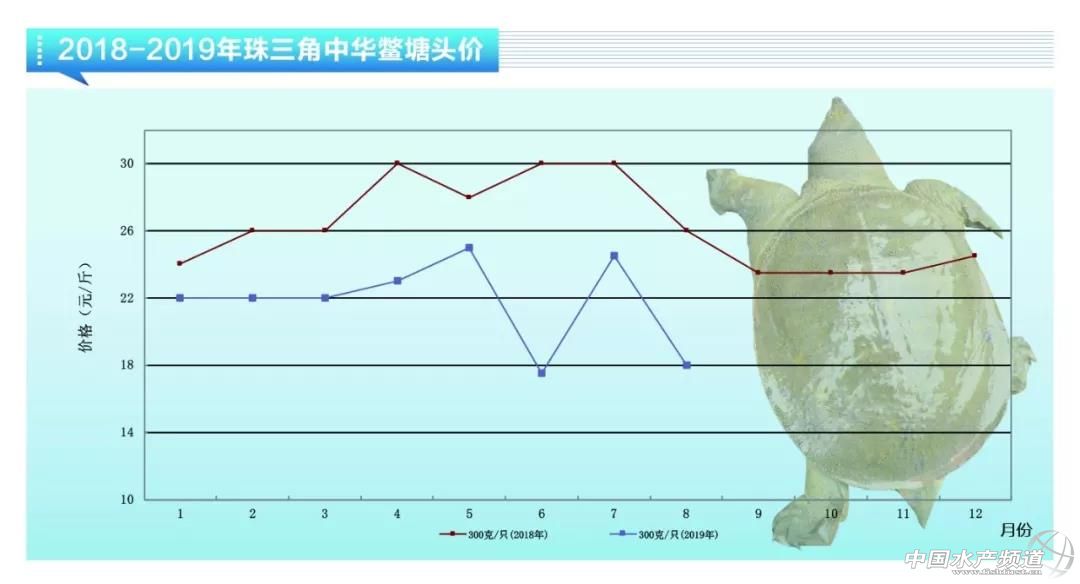 中國水產頻道原創報道,七八九月外塘魚下跌是常態,去年和前年的七八月份也是小跌。8月25日,浙江海鹽一帶精養池逐步開始收購,母魚8兩以上18元/市斤,公鱉1.2斤以上25元/市斤。三年生生態魚價格稍高,浙江臨平一帶平均1.5斤規格公母一起23元/斤。廣東揭陽等地公魚也是25元/斤,規格偏大28元。與去年同期比,整體價格約下跌了2元左右。溫室鱉行情則有上漲,江浙湖北安徽一帶溫室鱉統貨基本在14.5-15元/市斤。甲魚苗蛋行情進入尾聲,行情火爆,江西日本鱉紅蛋依然高達1.8-1.9元/枚。由于去年開始各地養殖戶投苗非常踴躍,并持續到今年現在,養殖戶擔心后市行情走弱,賣魚心態比較積極。因此公魚下行壓力還是比較大的,9月10月很有可能價格進一步下跌,甚至不排除明年后年甲魚開始走向熊市。(東方龜鱉網汪敏華) |