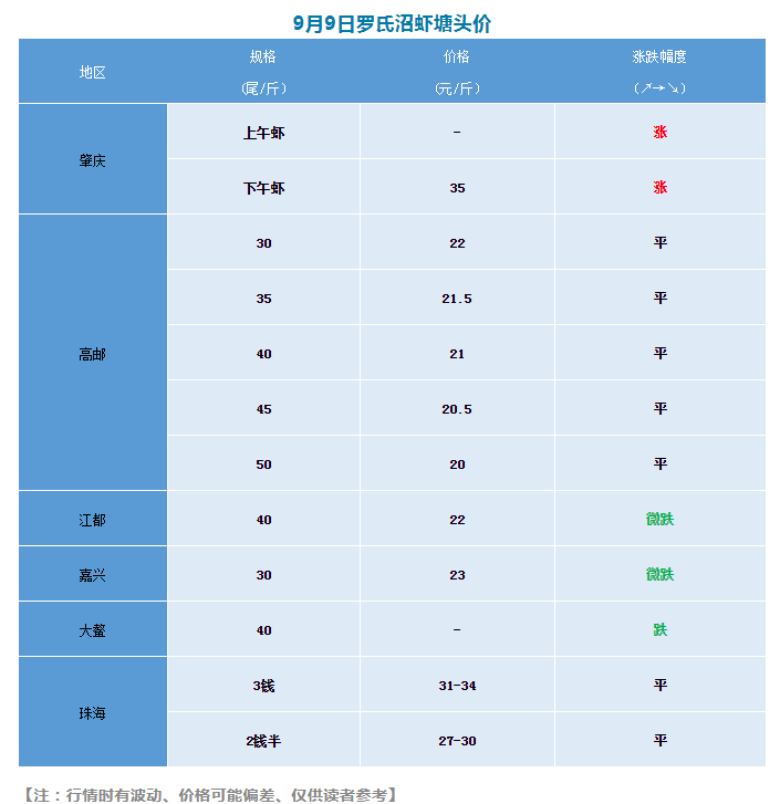 | 中國水產(chǎn)頻道原創(chuàng)報道, 終于等來好行情,本周羅蝦、斑節(jié)對蝦價格穩(wěn)中帶漲! 文/ 水產(chǎn)前沿 何鴻浩 本周行情 1、水產(chǎn)品行情漸漲 中秋佳節(jié)將近,白蝦、草魚、鯉魚、海鱸、生魚、加州鱸、黃顙魚等各水產(chǎn)品都有不同程度的增長,整體行情較好,而羅蝦、斑節(jié)對蝦也有小范圍增長。 2、斑節(jié)對蝦、羅蝦局部地區(qū)增長明顯 肇慶地區(qū)下午蝦增長幅度較大,與上周相比,增長4元/斤;高郵地區(qū)價格維穩(wěn),因為臨近中秋,養(yǎng)殖戶出蝦增多,故此價格沒有上漲;嘉興、江都價格略微下滑,幅度為0.5元/斤;大鰲地區(qū)價格不樂觀,業(yè)者表示行情不好;漳浦斑節(jié)對蝦30頭規(guī)格漲幅明顯,增長3元/斤。 3、臺風接二連三 13號臺風“玲玲”剛結(jié)束國內(nèi)的行程,15號臺風“法茜”直擊日本,16號臺風“琵琶”正在蓄勢待發(fā),計算機預測它將朝著我國而來,南方沿海區(qū)域或受其影響。業(yè)者建議養(yǎng)殖戶們?nèi)孕桕P注天氣、臺風,不能心存僥幸以及半點疏忽。 4、秋雨、秋老虎需警惕 隨著季節(jié)轉(zhuǎn)換,我國多地出現(xiàn)晝夜溫差加大的情況。華北部分地區(qū)一天之內(nèi)氣溫變化能達到15-20°;南方地區(qū)則變化較小,但有悶熱情況出現(xiàn);而西南地區(qū)將會面臨接連不斷地雨水,貴州局部地區(qū)甚至可能會發(fā)生中小河流洪水。 羅氏沼蝦 羅氏沼蝦 羅氏沼蝦 斑節(jié)對蝦 斑節(jié)對蝦(供圖:海南高大尚 彭正德) 日本對蝦、東方蝦 日本對蝦、東方蝦各區(qū)域未有流通信息,請各位讀者靜待佳音。 |
