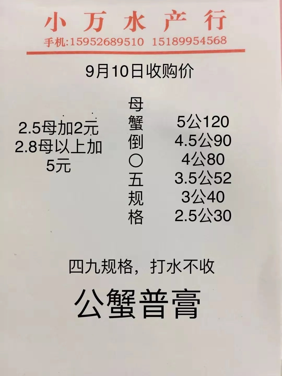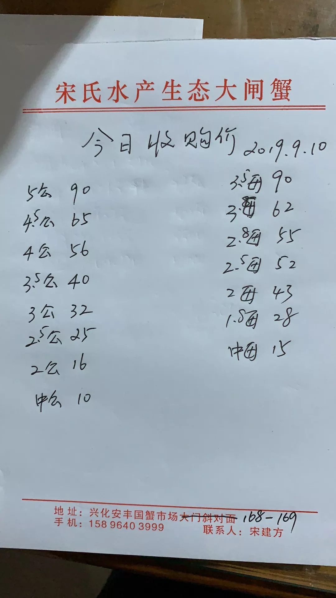 興化大蟹大跌!9月10日日成蟹、六月黃報價!