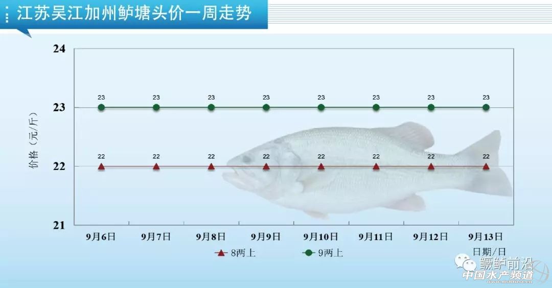 | 中國水產頻道原創報道, 養好魚,更要賣好魚! 加州鱸行情周報 《鱖鱸前沿》與您相約每周五 文/圖 鱖鱸前沿 李曉欣 今天是中秋佳節,祝愿所有的水產人闔家團圓!本周,受節日帶動消費影響,加州鱸銷量相比平時有所增加,產區塘頭價漲跌互現,其中廣東、湖北兩地魚價有所上漲0.5-2元/斤不等,而浙江、江蘇、四川魚價均回落了1元/斤,其他產區基本持穩。 縱觀各地塘頭價格,大多仍高企在20元/斤左右,行情依然大好。以廣東為例,目前8兩上舊魚塘頭報價維持在22元/斤左右,比去年同期價格17元/斤高出了5元/斤。目前全國加州鱸舊魚存塘都已很少,處于新舊魚交替的時段,預計隨著新魚逐漸上市增多,對魚價將有一定程度的沖擊,建議養戶理性看待魚價走勢,根據自身情況合理選擇出魚時機。 廣東佛山 本周佛山8兩上舊魚維持在22元/斤左右,南海沙頭產區的存塘舊魚僅剩幾塘,新魚陸續上市,6兩上報價14-15.5元/斤左右,7兩上16-17元/斤左右,有少部分塘口開始抓新魚8兩上規格,實際定價看魚頭大小和規格比例有所浮動。 浙江湖州 湖州統貨報價17-20元/斤,相比上周價格18-20下跌了1元/斤,本周湖州有少量新魚上市,大部分新魚還未達上市規格。 江蘇吳江 吳江8兩上鱸魚報價21-22元/斤,9兩上報價22-23元/斤,受廣東魚影響,吳江魚價有所波動,當地基本已經沒老口魚了,本周有個別新魚陸續上市,但量不大,流通商多到廣東收魚。 四川成都 本周成都鱸魚下調了1元/斤,今天9兩上報價20元/斤,主要是受廣東魚沖擊市場影響,擔心后市魚價繼續走低,當地養戶有點恐慌出魚,建議養戶理性看待魚價走勢,根據自身情況適機出魚。 湖北武漢 本周武漢上漲了1-2元/斤,今天8兩上起抓塘頭價20元/斤,節日消費帶動下市場銷量走俏,魚價有所回漲。當地舊魚基本已經清空,有少量新魚開始上市,市場供不應求之下部分流通商到湖南等地收魚。 湖南華容 本周華容魚價一周企穩,8兩上報價19元/斤,9兩上20元/斤,受中秋節日影響,當地銷量增加,今天下午還有魚中在塘邊開網拉魚。 廣西南寧 本周南寧魚價基本持穩,1斤上報價19-20元/斤,南寧本地老口鱸魚已經不多,新魚大部分也未達上市規格,部分水車到廣東收魚。 |