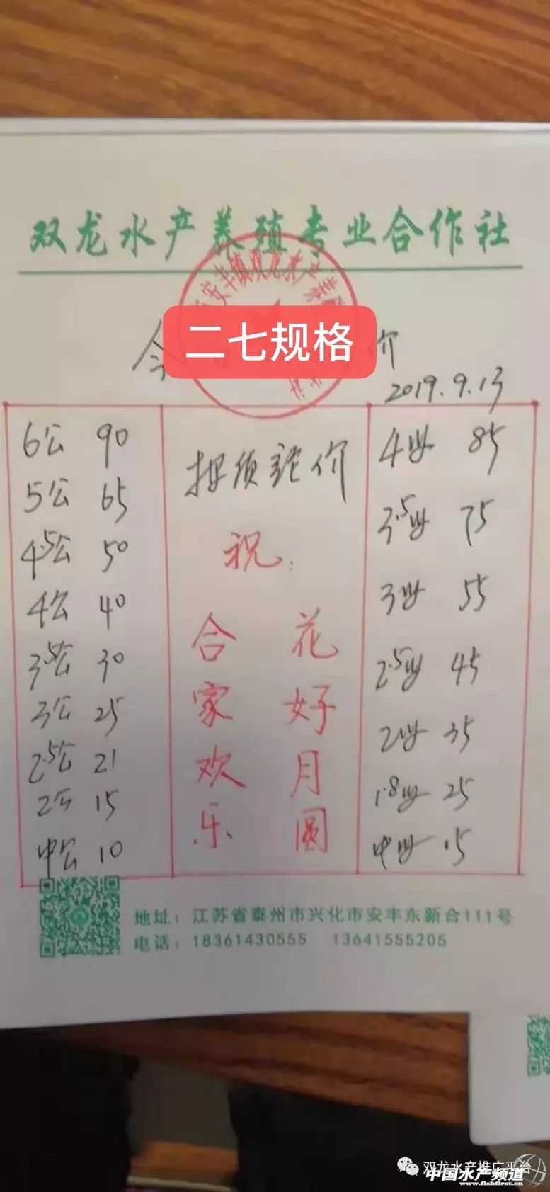 | 中國水產(chǎn)頻道原創(chuàng)報道, 做國內最中立的報價平臺,不被利益綁架,讓養(yǎng)殖者、流通商、零售商與消費者都能第一時間了解最真實的價格與供求數(shù)據(jù)。 行情分析 與昨天相比,興化今天行情整體平穩(wěn),價格基本未變。 高淳今天整體下跌。大規(guī)格精品蟹跌價明顯,小規(guī)格反而微漲。如4兩公蟹從昨天的115元/斤暴跌至今天的90元/斤,2兩公蟹、母蟹均上漲2元/斤。 盤錦今天跌多漲少,1兩母蟹漲0.5元/斤,1.5兩母蟹跌1元/斤,2.5公跌1元/斤。 今日交易價 高淳 此報價由江蘇好潤固城湖店劉坤提供 此報價由江蘇好潤固城湖店劉坤提供 泗洪 此報價單由江蘇好潤臨淮賈明先提供 今日參考價 興化 此報價由江蘇好潤安豐店劉詩微提供 高淳 此報價由江蘇好潤固城湖店劉坤提供 此報價由江蘇好潤固城湖店劉坤提供 此報價由江蘇好潤獅樹店田玲提供 盤錦 此報價單由盤錦王老板提供 泗洪 此報價由泗洪孫老板提供 建湖 此報價由江蘇好潤馬家蕩店宋利坤提供 馬鞍山 此報價由江蘇好潤塘南店張悅提供 此報價由江蘇好潤塘南店張悅提供 上海 此報價由上海曹老板提供 |