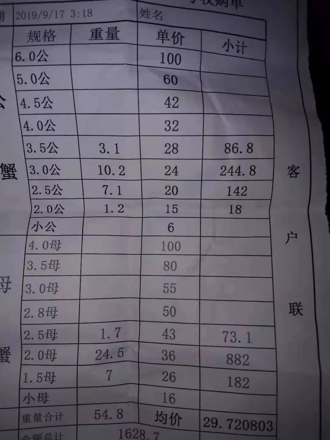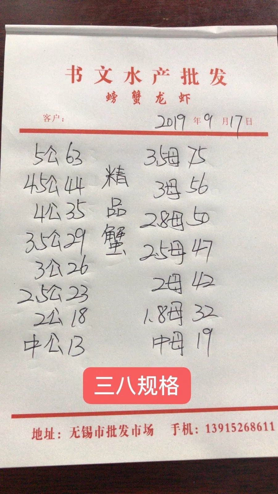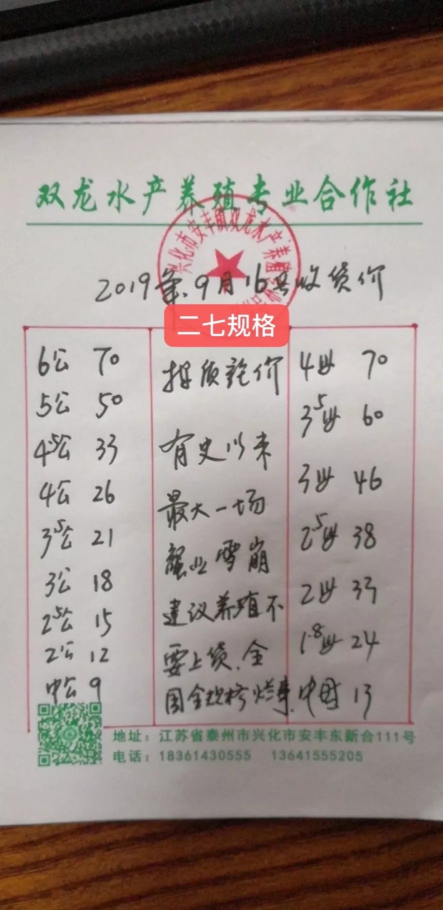 | 中國水產(chǎn)頻道原創(chuàng)報道, 做國內(nèi)最中立的報價平臺,不被利益綁架,讓養(yǎng)殖者、流通商、零售商與消費者都能第一時間了解最真實的價格與供求數(shù)據(jù)。 行情分析 與昨天相比,興化蟹價今天繼續(xù)下跌。大規(guī)格大跌,小規(guī)格小跌。4.5公、3.5母及以上大規(guī)格均跌10元/斤,其他規(guī)格跌1-7元/斤不等。3.5公跌從28元/斤跌至21元/斤,2.5母從43元/斤跌至28元/斤。 高淳今天也繼續(xù)下跌,部分門市一天報價2次,跌價2次,所有規(guī)格無一幸免,跌幅在4-20元/斤。4母從160元/斤跌至140元/斤,2.5母跌4元/斤,4.5公跌10元/斤。 今日交易價 馬鞍山 此報價由江蘇好潤塘南店張悅提供 泗洪 此報價由江蘇好潤臨淮店賈明先提供 今日參考價 興化 此報價由興化丁老板提供 此報價由江蘇好潤下圩店張玉蘭提供 高淳 此報價由江蘇好潤固城湖店劉坤提供 此報價由江蘇好潤獅樹店田玲提供 盤錦 此報價由盤錦王老板提供 泗洪 此報價由泗洪孫老板提供 此報價由江蘇好潤臨淮店賈明先提供 建湖 此報價由江蘇好潤馬家蕩店宋利坤提供 上海 此報價由上海曹老板提供 無錫 此報價由無錫王老板提供 |