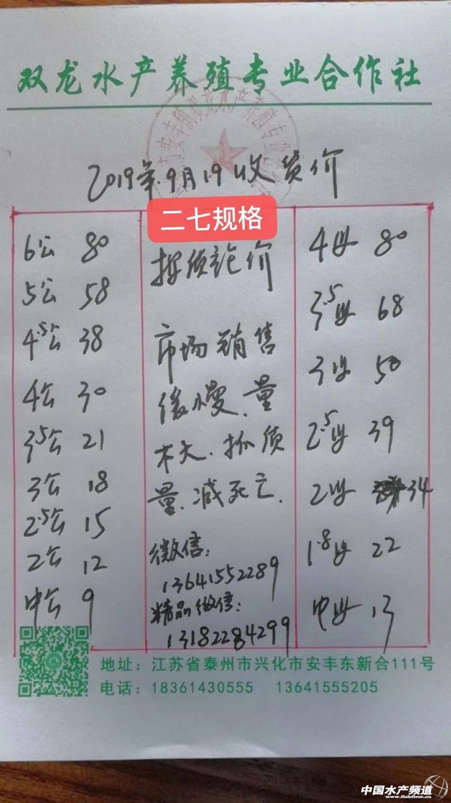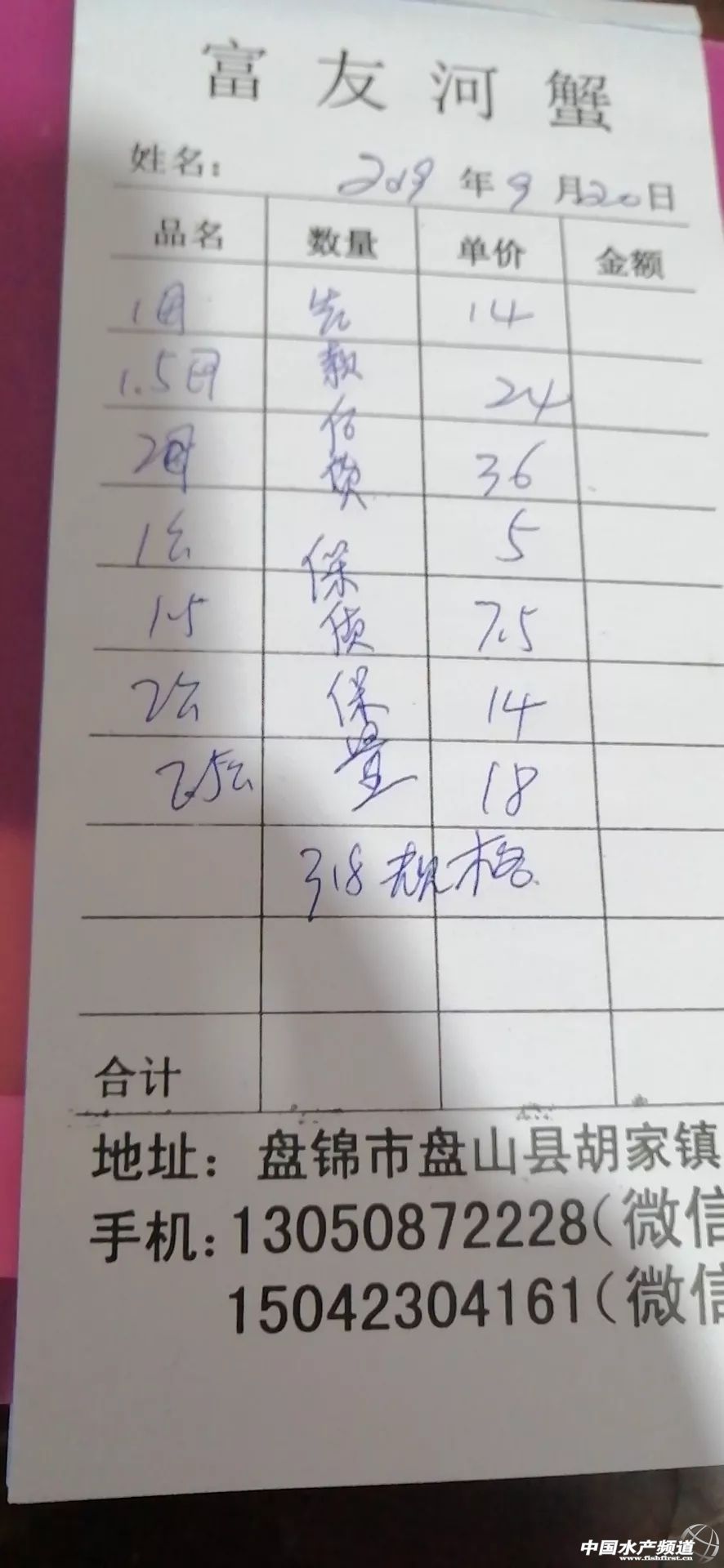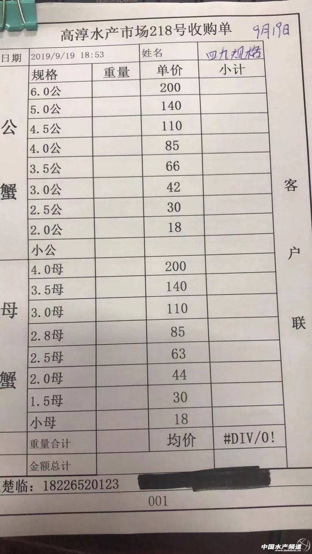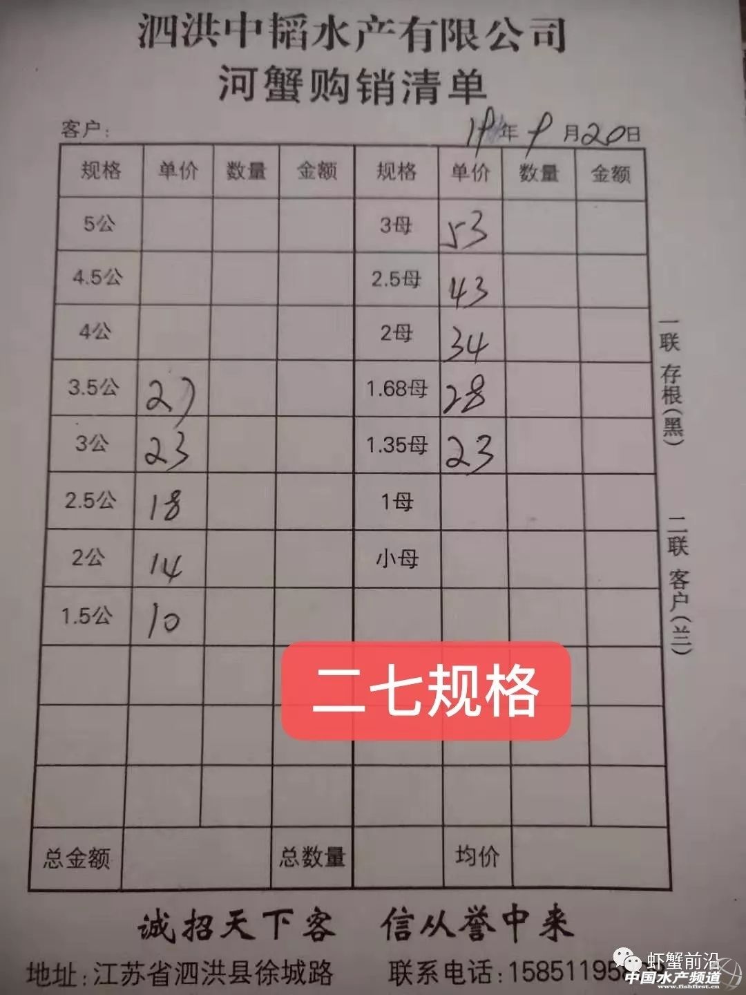 | 中國水產頻道原創報道, 行情分析 與昨天相比,興化蟹價今天繼續下跌。大規格大跌,小規格小跌。4.5公、3.5母及以上大規格均跌10元/斤,其他規格跌1-7元/斤不等。3.5公跌從28元/斤跌至21元/斤,2.5母從43元/斤跌至28元/斤。 高淳今天也繼續下跌,部分門市一天報價2次,跌價2次,所有規格無一幸免,跌幅在4-20元/斤。4母從160元/斤跌至140元/斤,2.5母跌4元/斤,4.5公跌10元/斤。 與昨天相比,今天興化大規格蟹價繼續上漲,小規格蟹價基本持平,僅1.8兩母蟹跌2元/斤。4公以上規格上漲2-5元/斤,2母及以上規格漲1-5元/斤。6公、4母均上漲5元/斤。 高淳今日微漲,上貨量開始增多,大蟹上漲明顯,小蟹微漲。精品門市6兩公蟹從200元/斤上漲至220元/斤,3.5公、3公分別上漲1元/斤、2元/斤。 盤錦1母、1公較昨天分別上漲2元/斤、0.5元/斤,其他規格價格基本保持不變。 ——蝦蟹前沿 近日交易價 高郵 此報價由江蘇好潤臨澤劉老板提供 今日參考價 興化 此報價由興化丁老板提供 此報價由江蘇好潤下圩店張玉蘭提供 此報價由鹽城天邦申亞陽提供 高淳 此報價由江蘇好潤固城湖店劉坤提供 此報價由江蘇好潤獅樹店田玲提供 此報價由江蘇好潤固城湖店劉坤提供 盤錦 此報價由盤錦王老板提供 泗洪 此報價由泗洪孫老板提供 宣城 此報價由宣城劉老板提供 無錫 |