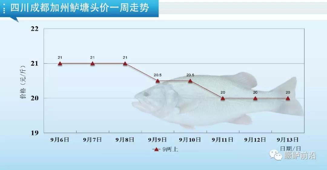 文/圖 鱖鱸前沿 李曉欣 中國水產頻道原創報道,本周中秋節后,各地加州鱸銷量逐漸恢復正常,但由于各加州鱸產區的存塘舊魚已經基本清空,而新魚上市除了廣東有一定的量,其他地區上市量很少,所以魚價整體呈穩中有升態勢。 現在廣東老口鱸魚已經基本清完,新魚陸續上市,但量不大,魚頭多以1.2-1.3斤為主,市場上大規格魚緊缺,近期外省舊魚陸續清空后,流通商南下廣東收魚增多,爽市之下魚價一周上漲了0.5-1.5元/斤不等;四川成都受廣東上漲影響,今天魚價也回漲了1元/斤;其他產區價格以企穩為主。 再過10天就是國慶黃金假期了,不少養殖戶期盼著魚價上漲,按照往年行情規律,國慶之后隨著新魚上市量逐漸增大,魚價將逐漸回落,建議養殖戶根據自身情況合理選擇出魚時機,確保養殖收益。 廣東佛山 佛山舊魚已經基本清空,新魚塘頭報價較亂,今天6兩上報價15.5-16.5元/斤左右,7兩上16.5-18.5元/斤左右,8兩上19-22元/斤左右,實際定價看魚頭大小和規格比例有所浮動。受市場大魚緊缺和外省水車來廣收魚增多影響,本周佛山魚價多次上調。 浙江湖州 本周湖州統貨價格維持在17-20元/斤左右,當地有個別新魚上市,塘頭報價較亂,預計10月中旬新魚才大批量上市。 江蘇吳江 吳江8兩上鱸魚報價21-22元/斤,9兩上報價22-23元/斤,一周價格企穩。吳江本地已經沒有老口魚了,有個別新魚陸續上市,流通商多到廣東收魚。 四川成都 今天成都9兩上鱸魚報價21元/斤,相比上周價格漲了1元/斤,主要是受廣東魚價上漲影響,當地新魚陸續上市。 湖北武漢 本周武漢9兩上魚價維持在20元/斤左右,武漢老口鱸魚基本清空,新魚僅有少量上市,流通商多到廣東收魚供應市場。 湖南華容 華容魚價一周企穩,8兩上報價19元/斤,9兩上20元/斤,當地老口鱸魚已經基本清完,新魚預計要到國慶才有少量上市。 廣西南寧 南寧1斤上魚價維持在19-20元/斤,南寧本地老口鱸魚已經不多,新魚大部分也未達上市規格,流通商多到廣東收魚。 產區加州鱸塘頭價一周對比