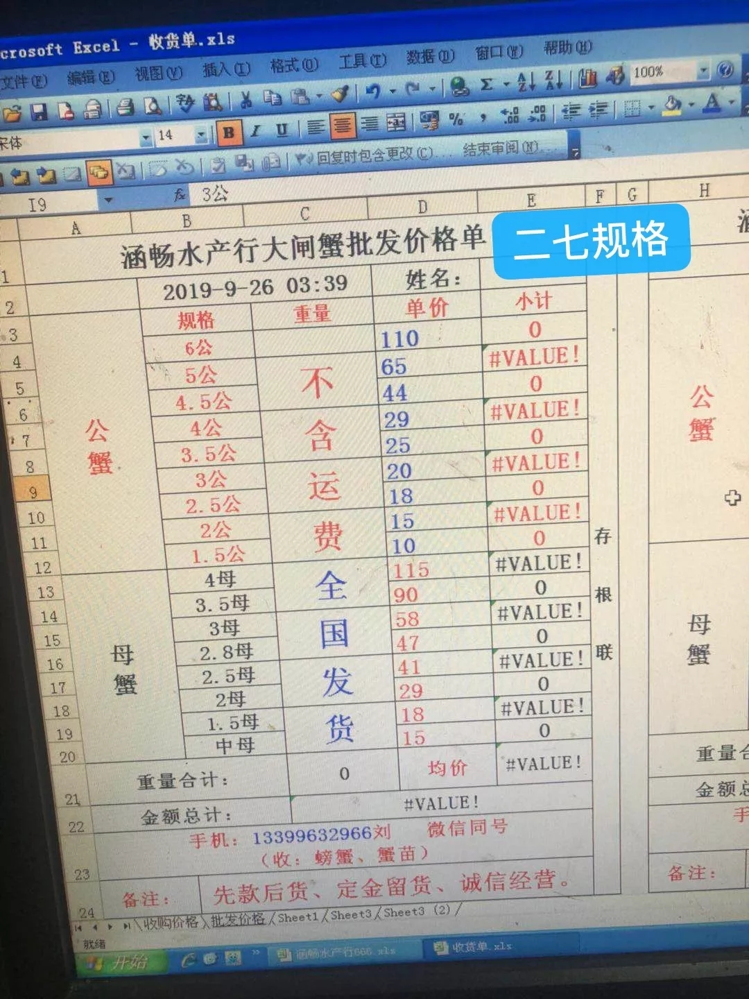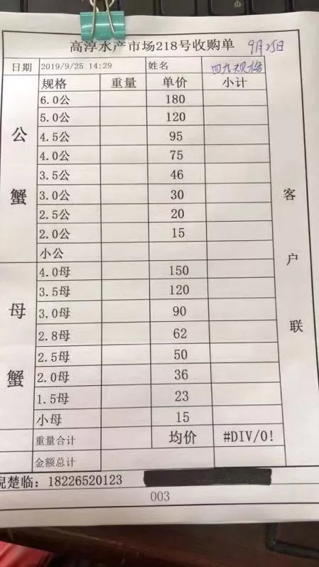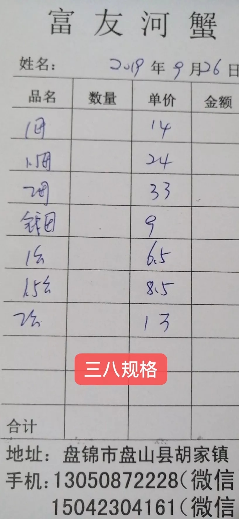 | 中國水產頻道報道, 做國內最中立的報價平臺,不被利益綁架,讓養殖者、流通商、零售商與消費者都能第一時間了解最真實的價格與供求數據。 行情分析 與昨天相比,興化今天蟹價基本平穩,僅2母下跌1元/斤,其他規格價格不變。 高淳今天公蟹上漲較多,5公從110元/斤漲至120元/斤,4.5公、4公、2公均上漲5元/斤;母蟹僅3.5母上漲10元/斤,2母漲1元斤;其他規格價格不變。 盤錦2母跌1元/斤,1公漲0.5元/斤,其他規格價格不變。 ——蝦蟹前沿 今日參考價 興化 此報價由興化丁老板提供 此報價由鹽城天邦申亞陽提供 高淳 此報價由江蘇好潤固城湖店劉坤提供 此報價由江蘇好潤獅樹店田玲提供 此報價由江蘇好潤固城湖店劉坤提供 盤錦 此報價由盤錦王老板提供 泗洪 此報價由泗洪孫老板提供 宣城 此報價由宣城劉老板提供 鹽城 此報價由鹽城天邦申亞陽提供 無錫 |