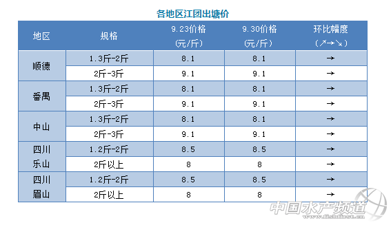 | 中國(guó)水產(chǎn)頻道原創(chuàng)報(bào)道, 文/圖 何氏水產(chǎn)、水產(chǎn)前沿 李靜 江團(tuán) 1、本周廣東江團(tuán)總體情況還是沒(méi)有太大改變,價(jià)格與上周持平。目前存塘的江團(tuán)偏大魚比較多,上漲空間不大,小魚存塘量不多,暫時(shí)也能滿足市場(chǎng)需求,價(jià)格暫時(shí)穩(wěn)定。天氣轉(zhuǎn)涼,部分外省水車有到廣東拉魚回本地銷售,銷量上漲了一點(diǎn),預(yù)計(jì)后期價(jià)格持穩(wěn)為主,銷量還會(huì)慢慢上升。 2、本周四川江團(tuán)大小魚價(jià)格也與上周持平,現(xiàn)在小魚存塘量比較少,銷量也不多;2斤以上的大魚本地需求量小,存塘量比較多,由于質(zhì)量與價(jià)格都比廣東有優(yōu)勢(shì),外地水車還會(huì)到本地拉魚回當(dāng)?shù)刭u,本周銷量比上周多,預(yù)計(jì)后期價(jià)格暫時(shí)穩(wěn)定。 |