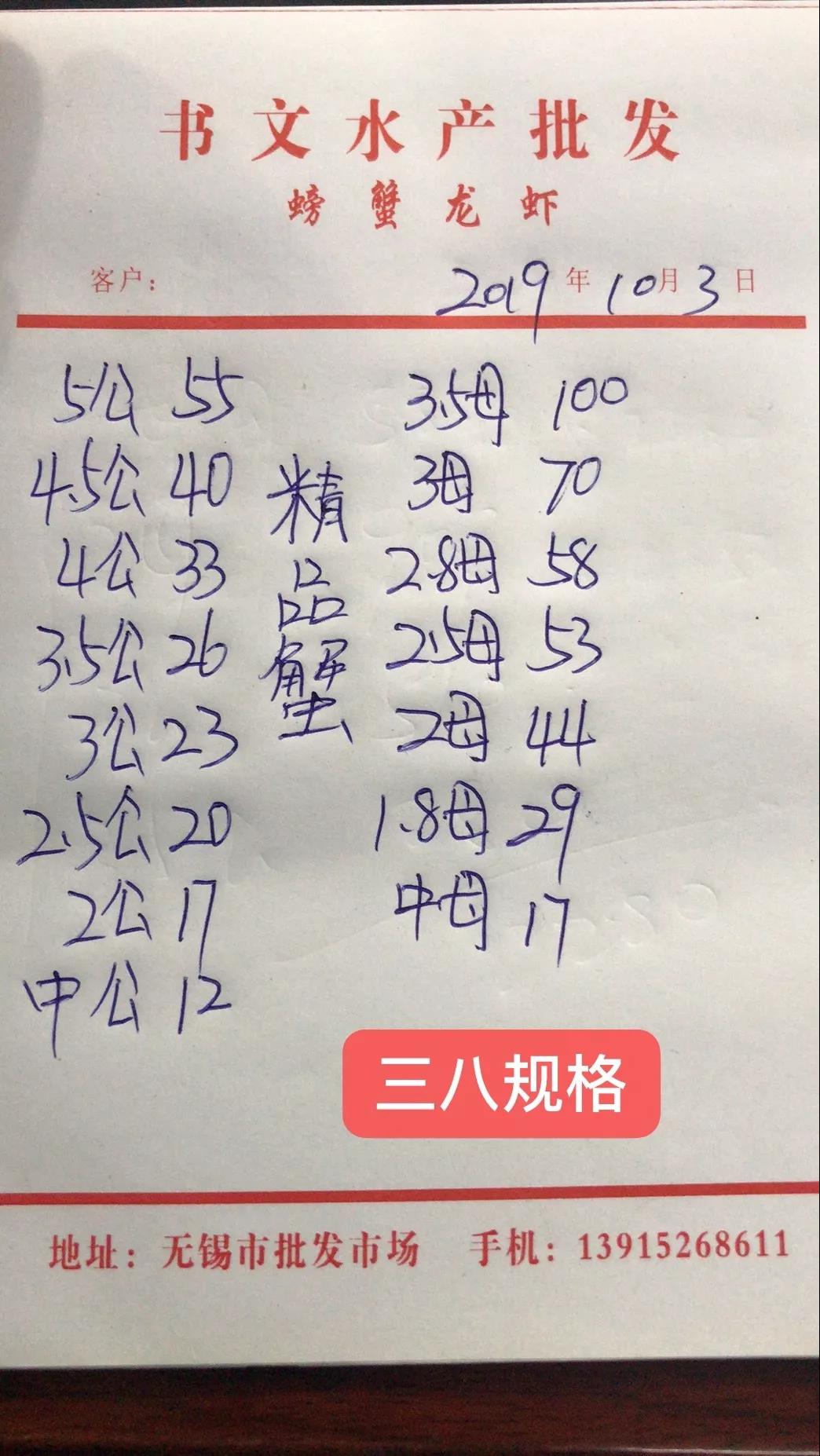 最新行情解析 興化 中國水產頻道原創報道,近期興化蟹價整體呈上漲趨勢,較國慶節前平均上漲2元/斤。但今天蟹價有所下跌,跌價主要以公蟹為主。目前市場對母蟹的需求還是比較大,母蟹價格堅挺,部分規格還略有上漲。蟹價主要還是由供需決定,公蟹成熟晚,目前需求少,價格暫時難以持續上漲。 今天興化公蟹除6公、中公外,其他規格下跌1-3元/斤不等。3.5公跌價最多,由20元/斤跌至17元/斤。母蟹大多平穩,2母、2.5母均上漲1元/斤。 高淳 近期高淳蟹價起伏較大,繼昨天小漲后,今天呈斷崖式下跌,價格甚至低于國慶節前,且低于去年同期。 今天高淳精品門市全線下跌,大蟹大跌,小蟹小跌。4.5公、5公、6公暴跌20元/斤,2.5母及以上規格均跌10元/斤以上。小規格蟹跌2-5元不等。 今日參考價 興化 此報價由興化丁老板提供 此報價由江蘇好潤永豐店提供 高淳 此報價由江蘇好潤固城湖店劉坤提供 此報價由江蘇好潤獅樹店田玲提供 此報價由江蘇好潤獅樹店田玲提供 盤錦 此報價由盤錦王老板提供 泗洪 此報價由江蘇好潤臨淮店賈明先提供 此報價由江蘇好潤臨淮店賈明先提供 馬鞍山 此報價由江蘇好潤塘南店張悅提供 無錫 此報價由江蘇無錫王老板提供 宣城 此報價由宣城劉老板提供 |