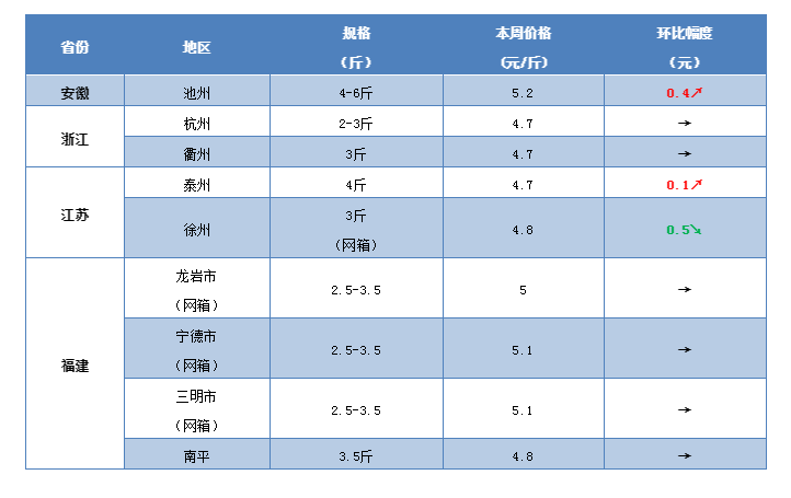 | 中國(guó)水產(chǎn)頻道原創(chuàng)報(bào)道, 節(jié)后,廣東,湖南,湖北以及江蘇草魚(yú)開(kāi)始出現(xiàn)上漲,最高漲0.5元/斤! 文/ 水產(chǎn)前沿 鄭鵬飛 一周要聞 七天黃金周期間,淡水魚(yú)行情出現(xiàn)全面爛市,多個(gè)品種的塘頭價(jià)均出現(xiàn)不同程度的下滑。目前,全國(guó)大部分地區(qū)草魚(yú)行情依然低迷,塘頭價(jià)較上周有明顯下滑。好消息是,最近兩天部分地區(qū)草魚(yú)行情開(kāi)始呈現(xiàn)好轉(zhuǎn)跡象,多地塘頭價(jià)出現(xiàn)上漲。 據(jù)了解,目前廣州3斤的草魚(yú)塘頭價(jià)可以賣(mài)到5.2元/斤,最高上漲0.3元/斤;中山草魚(yú)下滑趨勢(shì)放緩,3斤以上的草魚(yú)基本維持在5.3元/斤;江門(mén)部分地區(qū)3斤的草魚(yú)塘頭價(jià)已經(jīng)可以賣(mài)到5.5元/斤,最高上漲0.5元/斤;目前,湖北武漢3斤的草魚(yú)塘頭賣(mài)到4.5-4.6元/斤,上漲0.2-0.3元/斤,白沙洲市場(chǎng)可以賣(mài)到4.8-5元/斤;洪湖2斤以上的草魚(yú)塘頭賣(mài)4.7元/斤,上漲0.4元/斤;湖南常德有部分地區(qū)3斤的可以賣(mài)到4.6元/斤,上漲0.3元/斤;江蘇泰州地區(qū)3斤的草魚(yú)最新塘頭價(jià)賣(mài)4.3元/斤,較上周有0.1元/斤的上漲。 有業(yè)內(nèi)人士表示,“機(jī)會(huì)是留給有準(zhǔn)備的人的,魚(yú)價(jià)難關(guān)已經(jīng)過(guò)去”!接下來(lái),草魚(yú)行情會(huì)不會(huì)出現(xiàn)大逆轉(zhuǎn)呢?歡迎留言分享! 一周行情 華南地區(qū) 廣州:最近廣州的草魚(yú)塘頭價(jià)出現(xiàn)了小幅上漲。有養(yǎng)殖戶表示,目前3斤的草魚(yú)最新塘頭價(jià)可以賣(mài)到5.2元/斤,相比上周最高上漲0.3元/斤。 中山:本周中山地區(qū)草魚(yú)行情還是沒(méi)有出現(xiàn)好轉(zhuǎn),但是下滑趨勢(shì)已經(jīng)明顯放緩。目前,1-3兩的苗種最新報(bào)價(jià)6.2元/斤,下滑0.2元/斤;3斤左右的草魚(yú)塘頭價(jià)整體還是維持在5.3元/斤左右,有部分地區(qū)賣(mài)到4.8元/斤,下滑0.5元/斤。 肇慶:最近肇慶地區(qū)的草魚(yú)行情也是出現(xiàn)了一定的下滑。有養(yǎng)殖戶表示,現(xiàn)在魚(yú)價(jià)行情的波動(dòng)也反映出了養(yǎng)殖戶的賣(mài)魚(yú)心理,魚(yú)一好賣(mài)流通商就開(kāi)始搶魚(yú),很快魚(yú)一多又出現(xiàn)爛市。目前,肇慶地區(qū)3斤的草魚(yú)塘頭價(jià)5.3元/斤,下滑0.2元/斤,5斤的草魚(yú)賣(mài)6元/斤。 梅州:最近梅州地區(qū)的草魚(yú)整體行情不是很好。業(yè)內(nèi)人士表示現(xiàn)在魚(yú)不太好賣(mài),銷(xiāo)量不大,目前3斤的草魚(yú)最新塘頭價(jià)在5.3-5.4元/斤,下滑0.2元/斤。 江門(mén):從養(yǎng)殖戶了解到,目前江門(mén)部分地區(qū)3斤的草魚(yú)塘頭價(jià)已經(jīng)可以賣(mài)到5.5元/斤,較之前最高上漲0.5元/斤。 廣西:本周廣西地區(qū)的草魚(yú)行情依然沒(méi)有出現(xiàn)好轉(zhuǎn)。有養(yǎng)殖戶表示,目前來(lái)賓地區(qū)行情還是沒(méi)有出現(xiàn)好轉(zhuǎn),3斤的草魚(yú)塘頭價(jià)依然維持在5.2元/斤;最近桂林地區(qū)干旱導(dǎo)致很多水庫(kù)缺水,很多養(yǎng)殖戶被迫出魚(yú),估計(jì)近期行情還很難有大的好轉(zhuǎn),3斤左右的草魚(yú)塘頭價(jià)還是維持在5.3元/斤;貴港地區(qū)還是5.2元/斤,暫時(shí)不見(jiàn)好轉(zhuǎn)。 華中地區(qū) 江西:本周江西地區(qū)的草魚(yú)行情整體上還是非常低迷。從養(yǎng)殖戶了解到,目前南昌地區(qū)3斤的草魚(yú)最新塘頭價(jià)只賣(mài)到3.9元/斤,較之前再次下滑0.1元/斤。 湖北:由于對(duì)假期魚(yú)價(jià)行情期較高使得黃金周節(jié)日間草魚(yú)扎堆上市,但是大家的消費(fèi)更傾向于中高端水產(chǎn)品,結(jié)果草魚(yú)爛市非常嚴(yán)重,不過(guò)目前湖北多地草魚(yú)行情已經(jīng)開(kāi)始出現(xiàn)好轉(zhuǎn)。據(jù)了解,目前武漢地區(qū)3斤的草魚(yú)塘頭價(jià)在4.5-4.6元/斤,上漲0.2-0.3元/斤,白沙洲市場(chǎng)可以買(mǎi)到4.8-5元/斤;洪湖地區(qū)2斤以上的草魚(yú)塘頭賣(mài)4.7元/斤,相比上周上漲0.4元/斤;;仙桃地區(qū)3-5斤的草魚(yú)賣(mài)8元/斤,大鯽魚(yú)賣(mài)9元/斤,小鯽魚(yú)賣(mài)7元/斤,基本保持穩(wěn)定。據(jù)養(yǎng)殖戶介紹,最近隨州地區(qū)的草魚(yú)行情下滑了0.5元/斤左右,3斤的草魚(yú)塘頭只賣(mài)到6元/斤,“十一”節(jié)前仙桃地區(qū)0.8-1.2斤的加州鱸塘頭賣(mài)到22元/斤,目前只賣(mài)到16元/斤,暫時(shí)還沒(méi)有出現(xiàn)好轉(zhuǎn)。 湖南:本周湖南地區(qū)草魚(yú)行情整體上變化不大,局部地區(qū)出現(xiàn)回暖跡象。據(jù)養(yǎng)殖戶介紹,目前常德地區(qū)2-3斤的草魚(yú)大部分塘頭價(jià)依然維持在4.2-4.3元/斤,有部分地區(qū)3斤的可以賣(mài)到4.6元/斤,上漲0.3元/斤;益陽(yáng)地區(qū)草魚(yú)還是維持上周的價(jià)格,2斤以上的草魚(yú)塘頭賣(mài)4.4元/斤。 河南:本周河南地區(qū)的草魚(yú)塘頭價(jià)基本維持上周水平。從養(yǎng)殖戶了解到,目前開(kāi)封地區(qū)2斤以上的草魚(yú)最新塘頭報(bào)價(jià)4.6-4.7元/斤,暫時(shí)沒(méi)有出現(xiàn)明顯變化;鄭州地區(qū)3斤的草魚(yú)最新報(bào)價(jià)4.8元/斤,基本維持上周水平。 華東地區(qū) 江蘇:本周江蘇地區(qū)草魚(yú)有漲有跌。據(jù)了解,目前徐州駱馬湖有大批優(yōu)質(zhì)草魚(yú)低價(jià)拋售,3斤的網(wǎng)箱草魚(yú)最