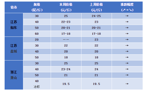 | 中國水產(chǎn)頻道原創(chuàng)報(bào)道, 文/水產(chǎn)前沿 植銀素 【本欄目由《水產(chǎn)前沿》、“西瑞動(dòng)保”聯(lián)合制定,助各養(yǎng)殖朋友,養(yǎng)得好、賣得好!】 本周行情 本周珠三角、粵西地區(qū)白蝦價(jià)格基本呈現(xiàn)下跌趨勢(shì),一方面是節(jié)后需求下降,活蝦交易也減少了,價(jià)格回落;另一方面是因?yàn)楸憋L(fēng)起,早晚溫差大,蝦吃料慢了,存塘基本以中小蝦為主,但是白便問題也沒有減輕,江門地區(qū)蝦中表示近期很多壞蝦上市,導(dǎo)致蝦價(jià)下降了。養(yǎng)殖戶也表示近期高位池養(yǎng)冬棚的已經(jīng)開始放苗了,土塘病害主要是細(xì)菌感染偷死和白便等。廣西欽防、福建漳浦、廣東潮汕地區(qū)蝦價(jià)在本周稍有上漲,但貨源供應(yīng)也不多,難走量。有養(yǎng)殖戶表示看好月底的蝦價(jià),因?yàn)樘鞖夥(wěn)定之后,成品蝦量少,價(jià)格或有走高可能! 今天風(fēng)王“海貝思”可能于12日-13日期間在日本本州島東南部登陸,對(duì)我國沒有直接影響,只有間接性影響。據(jù)氣象臺(tái)預(yù)測(cè),從11日起,“海貝思”將讓渤海、黃海、東海、臺(tái)灣海峽和南海全線刮起北風(fēng),12日起,冷空氣將在“海貝思”吸引下深度南下,直達(dá)廣東、海南,讓華南的悶熱迅速消退。這兩日北方地區(qū)降溫已經(jīng)非常明顯,多地驟降10°C,外塘蝦基本上市結(jié)束,同時(shí)節(jié)后消費(fèi)疲軟、難銷售都讓蝦價(jià)呈現(xiàn)下滑趨勢(shì),預(yù)計(jì)后期價(jià)格不會(huì)有大的變化,工廠化蝦則在11月中下旬上市。 至于后市行情如何,歡迎留言交流! 國內(nèi)部分產(chǎn)區(qū)蝦價(jià)分析 華南地區(qū) 珠三角:30條23-24元/斤,40條20-21元/斤,50條17元/斤,60條15元/斤,本周珠三角蝦價(jià)持續(xù)回落,交易量也逐漸減少,存塘蝦以中規(guī)格蝦為主,天氣轉(zhuǎn)涼,問題蝦增多,也導(dǎo)致蝦價(jià)下滑。 惠東:40條24元/斤,50條22元/斤。惠州地區(qū)黃金周期間蝦價(jià)一直高漲,節(jié)后價(jià)格有所回落,但是目前價(jià)格優(yōu)于中山、珠海等地。 陽江:土塘蝦價(jià)30條23元/斤,40頭20元/斤,50條18元/斤,60條17元/斤。本周陽江地區(qū)蝦價(jià)對(duì)比上周同期下滑幅度達(dá)到3-4元/斤,節(jié)后需求量下降,價(jià)格下滑較快,不過現(xiàn)在交易量也很少,基本在假期高價(jià)時(shí)售完大蝦。目前存塘以60-100條規(guī)格為主。 粵西:湛江高位池40條22元/斤,50條19元/斤;吳川高位池活蝦30條22元/斤,40條19-20元/斤。粵西地區(qū)對(duì)蝦量價(jià)齊跌,目前東海島基本很少養(yǎng)殖戶賣蝦,早的高位池已經(jīng)放苗半個(gè)月,現(xiàn)在因天氣問題比較養(yǎng)殖不穩(wěn)定,有養(yǎng)殖戶表示月底蝦價(jià)就會(huì)迎來上漲。 廣西:欽防30條30元/斤,40條25元/斤,50條20元/斤,本周廣西地區(qū)蝦價(jià)略有浮動(dòng),但依然高企,收購商表示后期還有上漲的可能,目前存塘以中蝦為主,起北風(fēng)后上料慢了,蝦發(fā)白便情況也嚴(yán)重。 福建:漳浦:30條25元/斤,40條22元/斤,50條19元/斤。龍海:30條26元/斤,40條22元/斤,50條20元/斤,60條17元/斤。福建地區(qū)近兩月蝦價(jià)都較穩(wěn)定,基本在1-2元內(nèi)上下浮動(dòng),目前冬棚養(yǎng)殖已經(jīng)開始,漳浦地區(qū)還有少量蝦上市。 華東地區(qū) 江蘇:如東外塘30條24-25元/斤,40條22-23元/斤,50條21元/斤,60條17-18元/斤。鹽城地區(qū)20條23元/斤,30條22元/斤,40條20元/斤,50頭18元/斤。對(duì)比上周同期鹽城、如東地區(qū)蝦價(jià)基本維穩(wěn),目前外塘銷售正值旺季,大蝦比小規(guī)格蝦更加暢銷,而且貨源充足,估計(jì)還有5成蝦未出,到本月20日會(huì)達(dá)到出蝦小高峰。 浙江蕭山:30條25元/斤,40條24元/斤,50條20-21元/斤。本周蕭山地區(qū)蝦價(jià)與上周持平,整體行情維穩(wěn)。 北方地區(qū) 山東:日照20條35元/斤,30條27元/斤,35條25元/斤,40條16元/斤,50條16-18元/斤,60條12元/斤。濱州地區(qū)25條25元/斤,30條23元/斤,40條20元/斤。本周山東日照蝦價(jià)維穩(wěn),外塘基本到收尾階段,預(yù)計(jì)后期也會(huì)保持穩(wěn)定,直到結(jié)束。濱洲、東營地區(qū)蝦價(jià)稍有下降,同樣接近尾聲,清塘蝦有以15-16元/斤統(tǒng)貨價(jià)格出售。 天津:20條28元/斤,30條21.5元/斤,40條19-20元/斤。天津地區(qū)很多塘口已經(jīng)清空,還有少量蝦上市,量少銷路有限,預(yù)計(jì)再過一周外塘結(jié)束。 遼寧:20條28元/斤,25條25-26元/斤,30條24-25元/斤。本周營口地區(qū)蝦價(jià)繼續(xù)上漲。外塘再過幾天就結(jié)束了,所以現(xiàn)在價(jià)格也是處于比較亂的階段,預(yù)計(jì)后期蝦價(jià)變化不會(huì)太大。工廠化蝦在11月開始上市,目前整體需求不高。 |