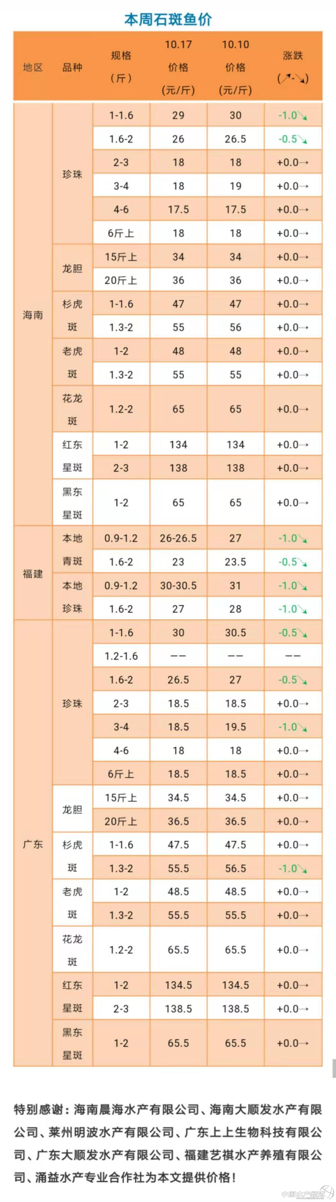 | 中國水產頻道原創報道, 文/ 水產前沿 吳佳輝 石斑商品魚 廣東:當前消費市場不景氣,價格持續下滑。養殖戶不愿賣魚,魚中收魚量也減少,導致價格一直不見起色。 海南:小規格珍珠繼續持續下跌,由于養殖戶出魚意愿不大。部分品種的石斑魚長速較快,十幾天的時間就能長1兩左右,很容易就超規格。而市場對超規格魚的需求量有限,導致大規格魚價格不高,小規格魚的價格也一直不見起色。 福建:從本周價格播報可以發現,福建珍珠和青斑的價格全線下滑。 分析:從業內人士的角度來看,石斑魚價格不見提高,主要還是因為市場消費量不高。石斑魚的產量超過15萬噸,但由于對終端渠道的拓展力度不夠,導致石斑魚價格持續穩定下滑。加工、出口、線上、線下,各種渠道的拓展需要加把勁。 |