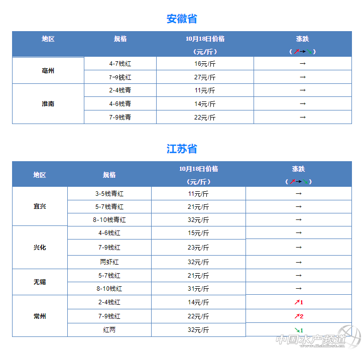 摘要: 中國水產頻道原創報道, 10月18日全國小龍蝦市場批發價 。