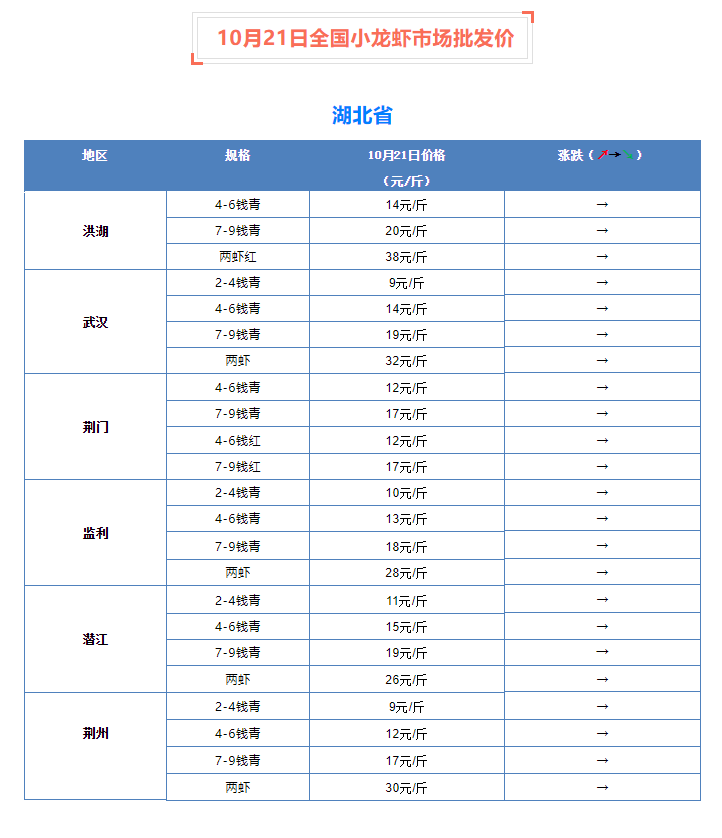 摘要: 中國水產頻道原創報道, 10月21日全國小龍蝦市場批發價。