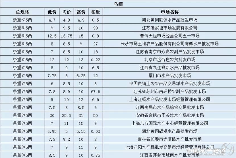 10月24日最新黑魚全國各地批發市場價