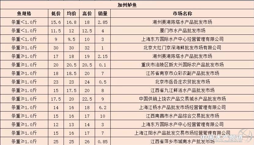摘要: 中國水產(chǎn)頻道報道,10月24日最新加州鱸全國各地批發(fā)市場價。