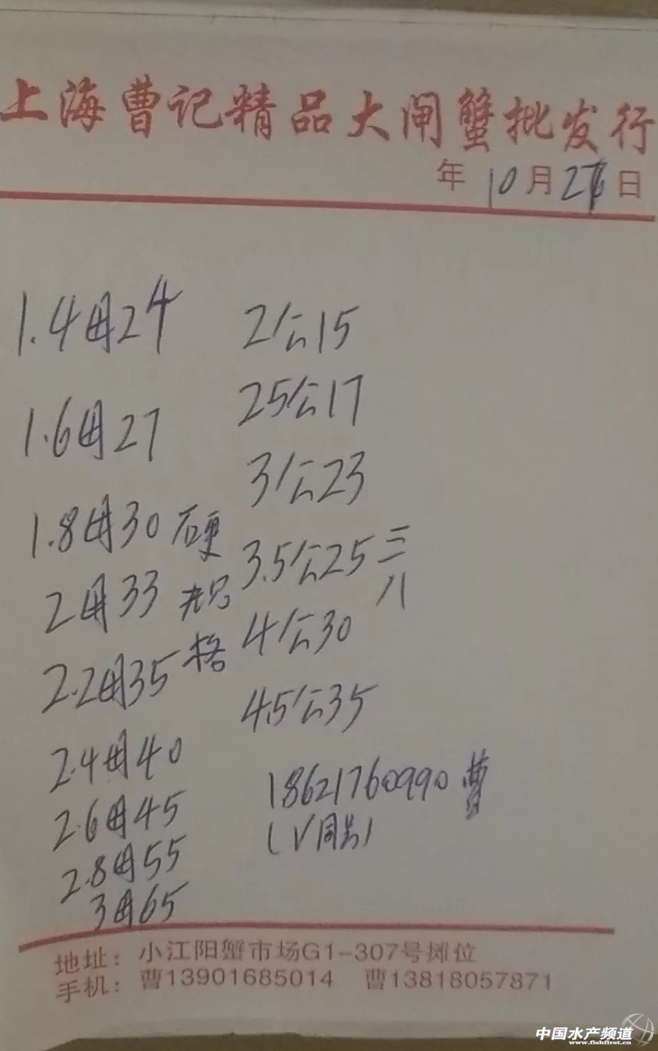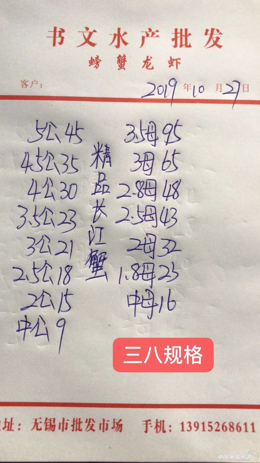 中國水產頻道原創報道, 高淳精品門市整體上漲。 蝦蟹行情每日播報 您身邊的行情顧問 歡迎關注蝦蟹前沿公眾號! 最新行情解析 高淳 近期高淳蟹價略有波動,今天高淳精品蟹價小幅上漲,目前平均蟹價為57.1元/斤,為近期最高。但與去年同期相比,目前蟹價仍舊偏低。 今天高淳精品門市,3母漲6元/斤,漲幅最大,3.5母漲5元/斤,2.8母、1.8母均漲1元/斤。公蟹方面,僅4公漲2元/斤,其他規格公蟹價格未變。 今日參考價 高淳 泗洪 此報價由泗洪孫老板提供 此報價由江蘇好潤臨淮店賈明先提供 無錫 此報價由無錫王老板提供 馬鞍山 此報價由江蘇好潤塘南店張悅提供 宣城 此報價由宣城劉老板提供 上海 此報價由上海曹老板提供。 【關鍵字】:蝦蟹 價格行情 水產養殖 |