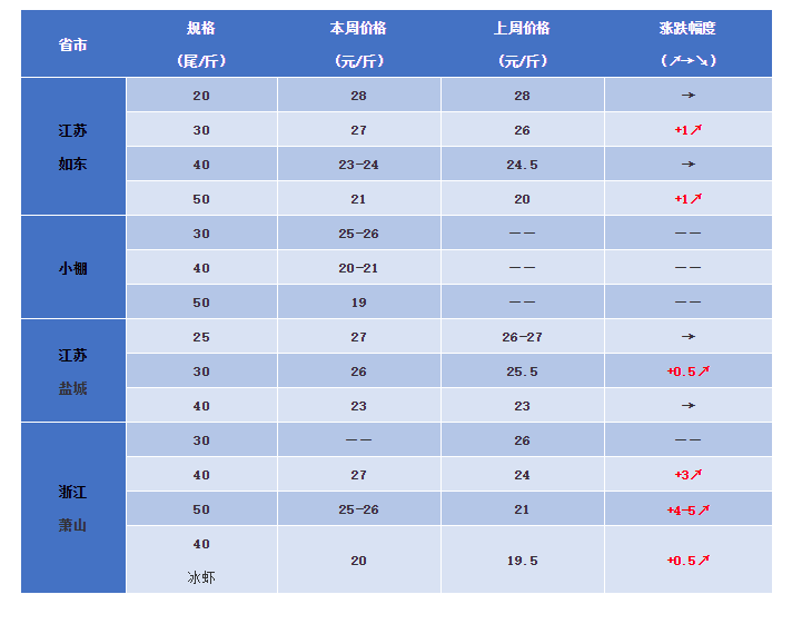 | 中國水產頻道原創報道, 文/水產前沿 植銀素 【本欄目由《水產前沿》、“西瑞動保”聯合制定,助各養殖朋友,養得好、賣得好!】 本周行情 本周珠三角地區的養殖戶終于等到了蝦價大漲的消息。據了解,中山地區各規格均漲3元/斤,珠海最高漲4元/斤,江門也出現明顯增長。但是流通商表示近期交易量仍然有限,養殖戶也沒有因為價格上漲而增加上市。本周,惠州地區蝦價也跟漲1元/斤,但是陽江、湛江地區保持平穩,甚至出現小幅下調,主要也是優質蝦少,病蝦上市的原因。 本周江浙地區蝦價持續穩中有升。目前如東外塘蝦存量約剩10%,而不加溫的棚蝦已經開始陸續上市,預計后期蝦價維穩或者小幅回落。據如東縣南美白對蝦協會消息,有多處養殖戶反映,自家塘口蝦有被竊的跡象,可能是近期蝦價上漲,讓小偷起了賊心。此處提醒養殖戶要謹防深夜不速之客,條件好的應裝上監控視頻。蕭山地區養殖戶表示,不到一周當地50條規格的蝦從20元/斤飆漲至25元/斤,貨源短缺讓蝦價快速飆升。有業內人士表示,這種上漲只是短期的,后期回落也會較大。 國內部分產區蝦價分析 華南地區 珠三角:30條28元/斤,40條24-25元/斤,50條20-21元/斤,60條18元/斤,本周珠三角蝦價對比上周同期上漲非常明顯,漲幅達到2-4.5元不等。其中中山地區蝦價上漲最穩,各規格均漲3元/斤,養殖戶表示一周不到漲3元,賣蝦早的都要后悔了。也有流通商表示現在優質蝦不算很多,整體交易量沒有大的增漲,預計后期仍有上漲空間。 惠東:30條25元/斤,40條21元/斤,50條19元/斤。惠州地區十一長假后蝦價不斷回落,養殖戶表示今年蝦子發紅體病較多,病蝦上市帶低蝦價,目前交易量很少,養殖戶出蝦意愿較低。不過,本周蝦價也跟漲了1元/斤,對養殖戶來說仍是好消息。 陽江:土塘蝦價30條25元/斤,40頭22元/斤,50條20元/斤,60條18元/斤。本周陽江地區蝦價對比上周同期保持穩定,目前存塘大蝦有限,養殖戶都希望養殖順利到元旦前出蝦,所以交易量少,預計蝦價在短期內維穩。 湛江:高位池40條22元/斤,50條19-20元/斤,東海島地區蝦價出現小幅調整,整體來說湛江、茂名地區交易量都較少,或者是病蝦上市,價格自然下降,養殖戶賣蝦時要多家比對,商議價格。 廣西:欽防30條28元/斤,40條25元/斤,50條19元/斤,本周廣西地區蝦價維穩,整體交易也有限,大蝦更少,存塘以中蝦為主。 福建:漳浦:30條24元/斤,40條21元/斤,50條19元/斤。龍海:30條26元/斤,40條22元/斤,50條20元/斤,60條18元/斤。福建地區冬棚養殖已經開始,漳浦地區還有少量蝦上市,出蝦接近尾聲,養殖戶表示價格又亂了,同樣的規格有漲有跌,賣蝦需謹慎。 華東地區 江蘇:如東外塘20條以內26元/斤,30條27元/斤,40條23-24元/斤,50條21元/斤。鹽城地區25條26-27元/斤,30條25元/斤,40條22元/斤,50頭19元/斤。對比上周同期如東、鹽城地區蝦價繼續上漲,但是鹽城地區外塘蝦基本清空,如東沒有使用加溫設備的小棚蝦在近期開始上市,價格略低于外塘。 浙江蕭山:40條27元/斤,50條26元/斤。蕭山地區蝦價在近兩日直線飆升,完美詮釋了“物以稀為貴”,但是業內人士表示這種大幅增漲是短期的,目前大棚蝦規格在70條左右。 北方地區 山東:日照30條26元/斤,40條20元/斤。濱州地區外塘結束,暫停報價。目前山東地區主要有少量工廠化蝦出售,價格穩中有漲,有業內認識表示按照往年慣例,在11月中將達到短期價格高峰。 天津、遼寧:外塘結束,暫停報價。 |