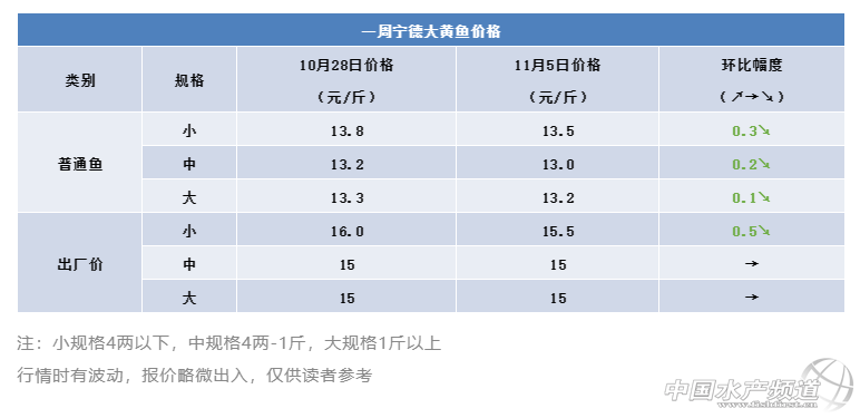 | 中國水產頻道原創報道, 為保護養戶利益,寧德市漁業協會又一大動作! 一周要聞 寧德多家漁業企業亮相2019年中國國際漁業博覽會 10月29日-11月1日,2019年中國國際漁業博覽會在青島國際博覽中心舉行,寧德市組織多家漁業企業和現代漁業養殖設施企業參展,進一步展示閩東漁業企業品牌形象,拓展漁業市場。 部分企業風采 附:本周寧德地區大黃魚報價 一周寧德大黃魚價格 本周寧德大黃魚又呈現下跌趨勢,中規格魚每斤下跌0.2元,大規格下跌0.1元,但小規格跌幅達0.3元,加工廠報價更是下降0.5元/斤。 面對這么低迷的行情,行業的有識之士自發的尋找破局之路,前幾日寧德市漁業協會對海面網箱現存黃魚量進行了普查,近期又聯合蕉城區海洋與漁業局聯合在三都鎮城澳村設立了水產品藥殘快檢實驗室。 筆者從寧德市漁業協會了解到,隨著國家與消費者對食品安全日益重視,藥檢合格的大黃魚已是供不應求。寧德市漁業協會負責人呼吁養殖戶,“如果有無藥殘的大黃魚,千萬別低價出售。協會每天都會發布收購行情,只要是無藥殘且外形色澤等符合要求的大黃魚,就可以要求收購方以高于市場行情的價格收購。只要大家堅持住,合格大黃魚價格每斤回升到十四塊都很正常。” 而筆者了解到,上半年大黃魚價格一直不是很理想,只有短暫的時間突破15元,就算漲到14塊/斤的行情,離許多養殖戶心理預期的價位還很遠。但是養殖量供大于求,在行情低迷的情況下保存本金才是首要考慮的事情,盈利應該在價格周期波動之后考慮,行情不會一直差下去的。 |