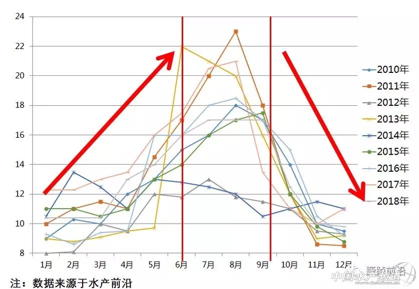 | 中國(guó)水產(chǎn)頻道原創(chuàng)報(bào)道, 廣東非主產(chǎn)區(qū)加州鱸養(yǎng)殖技術(shù)分享(上) 文/ 佛山市南海區(qū)杰大飼料有限公司技術(shù)總監(jiān)汪福保 編輯/ 鱖鱸前沿 李曉欣 本文所說(shuō)的廣東非主產(chǎn)區(qū)是相對(duì)佛山南海、順德高密度養(yǎng)殖區(qū)域而言,包括近年來(lái)逐漸興起的三水、高明、高要、四會(huì)、番禺、花都、中山、江門(mén)及珠海等區(qū)域,這些是養(yǎng)殖傳統(tǒng)常規(guī)品種的集中區(qū),受豬鴨禁養(yǎng)以及消費(fèi)習(xí)慣的改變,養(yǎng)殖效益不理想,亟需面臨養(yǎng)殖品種轉(zhuǎn)型,而目前來(lái)說(shuō),加州鱸是最理想的轉(zhuǎn)型品種選擇。外省區(qū)域因氣候、水質(zhì)、上市規(guī)格等原因,養(yǎng)殖模式會(huì)有一些差異,但基本的方法是相通的,本文可供外省區(qū)域養(yǎng)殖戶朋友略作參考。 掃描圖片二維碼可回顧本次課程 目 錄 一、目前養(yǎng)殖形勢(shì)分析及市場(chǎng)變化 二、近10年加州鱸價(jià)格變化規(guī)律 三、主流養(yǎng)殖模式和非主產(chǎn)區(qū)優(yōu)劣勢(shì)分析 四、養(yǎng)殖模式的創(chuàng)新關(guān)鍵點(diǎn) 五、非主產(chǎn)區(qū)養(yǎng)殖模式規(guī)劃和成本利潤(rùn)分析 六、養(yǎng)殖基本流程 七、科學(xué)的投喂管理 八、養(yǎng)殖案例和數(shù)據(jù)分析 九、互動(dòng)交流實(shí)錄 一、水產(chǎn)養(yǎng)殖端和消費(fèi)端的變化 關(guān)于消費(fèi)端大家可以明顯地感受到,經(jīng)過(guò)連續(xù)多年的拆網(wǎng)箱、江河湖泊禁養(yǎng),草魚(yú)、羅非等常規(guī)品種養(yǎng)殖量逐年減少,但價(jià)格依舊未見(jiàn)起色,而另一方面,以加州鱸為代表的特種魚(yú)養(yǎng)殖量逐年增加,但依然有可觀的利潤(rùn),一個(gè)很重要的原因就是來(lái)自消費(fèi)端的變化: 1、以90后、00后為代表的方便、快捷的飲食文化; 2、不再一定追求活魚(yú),速凍魚(yú)逐漸被消費(fèi)者接受,加工廠逐漸興起; 3、收入提高帶來(lái)的消費(fèi)品種升級(jí),以往家庭、宴席消費(fèi)的主體從鯉魚(yú)、草魚(yú)等逐漸升級(jí)為加州鱸、石斑、鱖魚(yú)等高檔品種; 4、進(jìn)口巴沙魚(yú)以低廉的成本給草魚(yú)、羅非等品種帶來(lái)了較大的沖擊。 因此,常規(guī)品種面臨著以下困境:在加工端,成本無(wú)法與巴沙魚(yú)競(jìng)爭(zhēng),草魚(yú)小刺不太適合深加工,羅非魚(yú)內(nèi)銷(xiāo)市場(chǎng)接受度低,外銷(xiāo)市場(chǎng)不確定因素多;在消費(fèi)端,擺酒席逐步形成以加州鱸、石斑魚(yú)、鱖魚(yú)為主導(dǎo),家庭消費(fèi)也逐漸向特種魚(yú)升級(jí)。常規(guī)品種面臨左右?jiàn)A擊,在目前形勢(shì)下,養(yǎng)殖品種升級(jí)是大勢(shì)所趨。 二、近10年加州鱸價(jià)格變化規(guī)律 從2010-2018年加州鱸塘頭價(jià)格走勢(shì)圖中可以看出,每年加州鱸價(jià)格的變化規(guī)律基本上是相似的,6-9月為全年的魚(yú)價(jià)高峰期,9月份過(guò)后開(kāi)始逐月下降,主要是受主產(chǎn)區(qū)3-5月集中放苗,9-12月份集中出魚(yú)的影響。 三、加州鱸全國(guó)主流養(yǎng)殖模式 。ㄒ唬┓硼B(yǎng)方面 1、高密度精養(yǎng)(6000-12000尾/畝):廣東順德、南海; 2、低密度精養(yǎng)(2000-5000尾/畝):江浙、四川、華中放養(yǎng)密度在3000尾/畝左右,珠三角非主產(chǎn)區(qū)放養(yǎng)密度在4000-5000尾/畝左右; 3、網(wǎng)箱養(yǎng)殖(100-150尾/平方):貴州、廣西、華中等 4、水槽養(yǎng)殖(100尾左右/立方):占比較小 。ǘ┵u(mài)魚(yú)方面 根據(jù)出魚(yú)時(shí)間一般分為頭批魚(yú)、中批魚(yú)及尾批魚(yú)養(yǎng)殖模式: 1、行情高點(diǎn)(6-9月)清完:尾批魚(yú)(反季節(jié)或者年前早批水花為頭批魚(yú)) 2、年前(中秋、國(guó)慶、春節(jié)前)清完:頭批魚(yú) 3、排卵前、清明前(4月)清完:中批魚(yú) 。ㄈ┩段狗矫 1、非冰鮮產(chǎn)區(qū) 隨著飼料的成熟,從艱難前行到迅猛發(fā)展。 2、冰鮮產(chǎn)區(qū) 江浙禁冰鮮、飼料優(yōu)勢(shì)明顯,部分或全程飼料已成共識(shí)。 3、長(zhǎng)速 價(jià)格規(guī)律決定長(zhǎng)速至關(guān)重要,高溫期攝食量成瓶頸。特別是出頭批魚(yú)時(shí),長(zhǎng)速如果快個(gè)十天半個(gè)月出魚(yú),每斤魚(yú)差價(jià)可達(dá)幾塊錢(qián),而這一部分的利潤(rùn)基本不用投入什么成本。 四、非主產(chǎn)區(qū)養(yǎng)殖加州鱸優(yōu)劣勢(shì)分析 (一)優(yōu)勢(shì) 1、塘租便宜 佛山順德、南海過(guò)萬(wàn)塘租,依然有可觀利潤(rùn); 2、病害相對(duì)更少 養(yǎng)殖未成規(guī)模,病害沒(méi)有廣泛傳播,這也是很多非主產(chǎn)區(qū)養(yǎng)殖戶第一年養(yǎng)反而成功率比較高的原因之一; 3、水源污染少 相對(duì)主產(chǎn)區(qū)的高密度所帶來(lái)的養(yǎng)殖廢水排放問(wèn)題少一點(diǎn),相應(yīng)水源也會(huì)好一些。 4、養(yǎng)殖成本低 錯(cuò)開(kāi)主產(chǎn)區(qū)出魚(yú)高峰,放苗密度相對(duì)低,長(zhǎng)速快,料比低。 。ǘ┝觿(shì) 1、養(yǎng)殖技術(shù)欠缺 加州鱸的調(diào)水方式、投喂、疾病管理等與常規(guī)品種有明顯差異,如果沒(méi)有相應(yīng)的一些養(yǎng)殖技術(shù),養(yǎng)殖難度較大; 2、銷(xiāo)售渠道相對(duì)不夠通暢 養(yǎng)殖未形成規(guī)模之前,賣(mài)魚(y