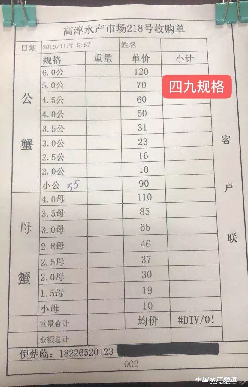 中國水產頻道原創(chuàng)報道, 沈君 蝦蟹前沿 興化上漲,高淳平穩(wěn)。 蝦蟹行情每日播報 您身邊的行情顧問 歡迎關注蝦蟹前沿公眾號! 最新行情解析 高淳 近期高淳精品蟹價整體呈下跌趨勢,與昨天相比,今天蟹價基本持平,目前平均蟹價為48.9元/斤。與去年同期相比,目前蟹價明顯偏低。 今天高淳精品門市各規(guī)格蟹價基本未變。 興化 近期興化精挑蟹價呈上漲趨勢,自4日大漲后,今天繼續(xù)小幅上漲,其中3母漲3元/斤,3公、2.5母、2母均漲1元/斤。 同時,今天興化市場指導價普挑、普貨價格均有所上漲。 今日參考價 興化 此報價由江蘇好潤永豐店沈殷提供 高淳 此報價由江蘇好潤固城湖店劉坤提供 泗洪 此報價由泗洪孫老板提供 無錫 此報價由無錫王老板提供 金壇 此報價由江蘇常州楊老板提供 【關鍵字】:蝦蟹 價格行情 水產養(yǎng)殖 |