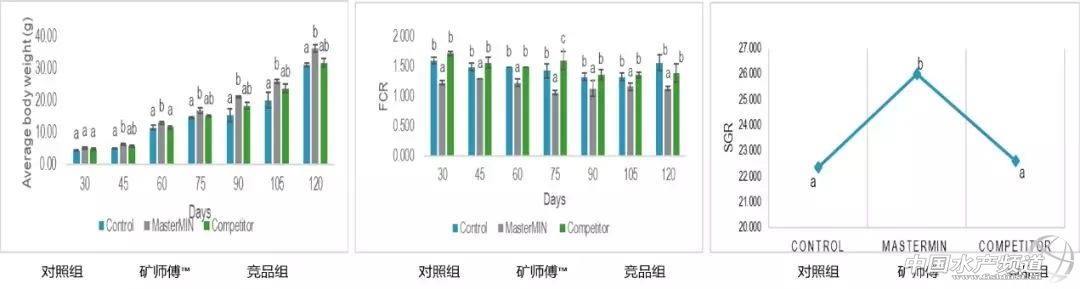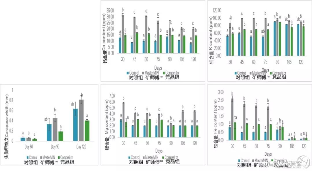 | 中國水產頻道報道, 中國是世界上水產動物生產和消耗最多的國家,其中對蝦作為兼具美味和健康的日常蛋白質來源備受消費者們的青睞。目前,中國對蝦的養殖產量已達到每年120萬噸,而對蝦的消費需求達到了135萬噸且不斷在上漲[1]。在土地、人工、飼料成本高漲以及環保壓力日益增加的大背景下,如何高效且高密度地養殖出符合市場需求的蝦,一直以來都是養殖戶朋友們最關心的話題。 圖1 在養殖過程中,對蝦需要進行多次蛻殼才能從幼體最終長成大規格蝦。在各種營養和礦物質補給充足的情況下,每一次蛻殼后,蝦的體重和體型會有明顯的增加。蛻殼能細分為蛻殼間期、蛻殼前期、蛻殼期、蛻殼后期以及后續期。蛻殼間期:對蝦的攝食量明顯提高,吸收大量鈣、鎂、鉀、鐵等礦物質元素,儲備能量為蛻殼做準備。蛻殼前期:對蝦攝食減少開始合成新的表皮,舊的表皮開始分解,當舊表皮和新表皮分離時,蝦體開始吸水,完全停止攝食為蛻殼做準備。蛻殼期:時間非常短,通常為幾秒到幾分鐘,蝦體在充分吸水后,舊外殼破裂蝦體從舊殼中蛻出。蛻殼后期:剛完成蛻殼后,新外殼較為柔軟,蝦體仍需要大量吸水以延展新殼,此時蝦不攝食,此過程也較短。蛻殼后續期:蝦殼開始硬化,需要吸收大量鈣質和微量元素,此過程的長短取決于水體的礦物質元素的含量,當蝦殼完全硬化后,蝦體會排出過多的水分并開始攝食,最終完成蛻殼。 建明水產科技推出了最新專為對蝦養殖系統設計的均衡多礦產品-礦師傅?,能夠全階段覆蓋對蝦蛻殼的所有時期,幫助對蝦順利蛻殼、加速外殼硬化、縮短蝦因軟殼而易感疾病的空窗期。 礦師傅™相比市場同類產品的三大優勢 1.更高效的礦物圖譜。礦師傅™是同時涵蓋了常量元素和微量元素的獨特組合,其離子礦成分可溶性高、更易吸收。礦師傅™的有效成分可溶性高達70%,礦物質元素以離子形式存在,能夠快速進入水體、最終被蝦吸收。 2.更優化的礦物配比。礦師傅?的研發過程貼近中國熱點養殖區域的實際情況,采集了當地的淡水和海水水樣進行礦物質圖譜分析,有針對性的補足和縮減水體中缺乏和過多的元素,以達到精準匹配、個性化訂制的目的。 3.更安全的礦物原料。多礦產品的原料會涉及到十多種金屬鹽類,在其生產過程中往往會引入二惡英等風險物質,最終將影響消費者的健康。建明水產科技具有完整而嚴格的原料風險控制體系,嚴格篩選高質量、低風險的原料,以保障終產品不會對環境和消費者造成危害。 圖2,礦師傅™與其他三款競品的溶解度對比結果[2] 應用礦師傅™120天對蝦養殖實驗結果表明 1.礦師傅™添加組對蝦均重顯著高于其他處理組,飼料轉化度顯著優于其他處理組,特定生長率顯著高于其他組。 圖3,礦師傅™應用后對蝦的體重(左)飼料轉化率(中)和特定生長率(右)[3] 2.在對蝦體組成中鈣、鉀、鎂和鐵含量上,礦師傅?添加組顯著高于其他處理組。對蝦頭胸甲寬度,礦師傅?添加組顯著高于其他處理組。 圖4,添加礦師傅™后蝦體重鈣、鉀、鎂、鐵含量和頭胸甲寬度[4] 3.實驗中養殖中后期,礦師傅?添加組養殖水體總堿度、水體總硬度、鈣含量和水體浮游植物總量顯著高于其他組,生物耗氧量顯著低于其他組。 圖5,添加礦師傅™后水體總堿度、水體總硬度、鈣含量和水體浮游植物總量[5] 因此,對蝦養殖中添加礦師傅™后水體總堿度、水體浮游植物更穩定,更有助于礦物元素在對蝦體內沉積,從而更有助于對蝦獲得更好的生長表現和飼料表現。 更多產品發布詳情及專家在線答疑,掃描二維碼 |