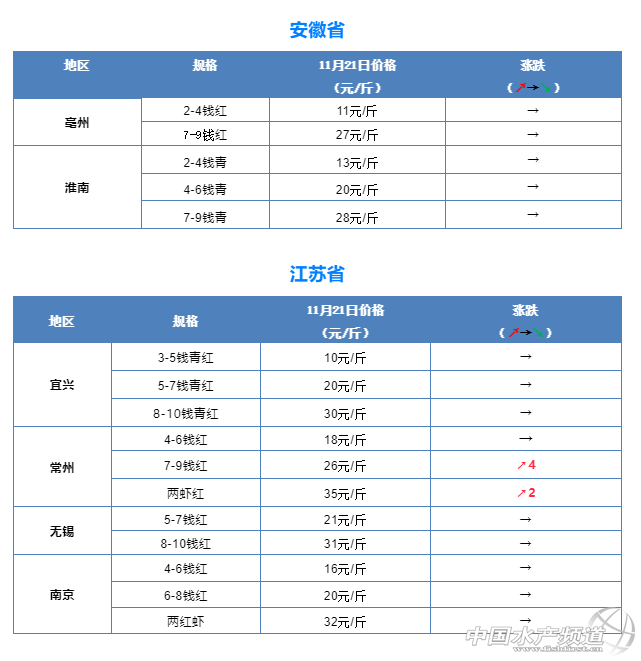 11月21日全國小龍蝦市場批發價
