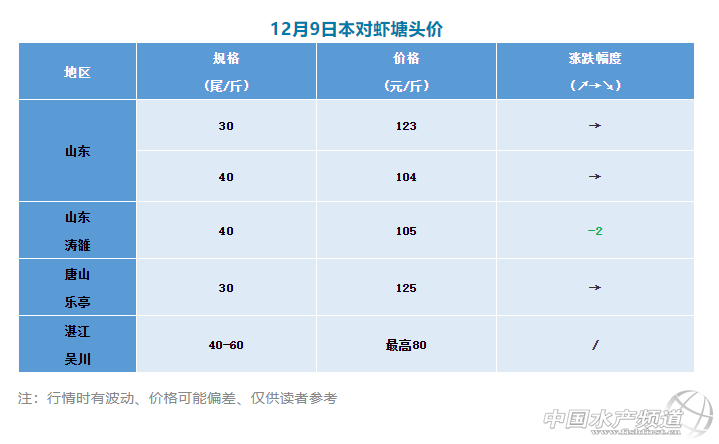 | 中國水產頻道原創報道, 本周羅氏沼蝦、斑節對蝦、日本對蝦行情報價 文/ 水產前沿 何鴻浩 本周行情 1、斑節對蝦漲勢洶洶 近來,斑節對蝦價格居高位且仍會偶有增長。其中陽江地區增長較為明顯,不少養殖戶都持蝦待高價。本周,海南多地受到冷空氣影響,許多養殖戶的蝦都出現問題,病蝦較多導致蝦價有些許跌落。同時,有業者表示越南斑節對蝦也開始進入國內市場,后續市場行情可能會有所改變。 2、業者:越南斑節對蝦品相好,受歡迎 有業者表示有不少越南斑節對蝦從廣西邊境進入到國內市場,通過正規邊貿途徑,稅費在1元/斤左右。業者表示,現在的越南斑節對蝦多從越南南部空運至越南北部,再車運至廣西邊境,最終進入國內市場。目前,越南斑節對蝦供應穩定,蝦體顏色偏紅,品相好且價格稍低,受水產商行和消費者青睞。 3、日本對蝦增長暫緩 本周,日本對蝦的價格增長有所減緩。湛江吳川地區市場規格多為40條至60條規格,最高價格約在80元/斤,未有更高報價。河北唐山地區價格仍與上周相同,且市場上市量較少。山東多個地區價格也與上周相似,價格沒有大變動。 4、業者:今年羅氏沼蝦爛市 近期有業者表示,今年羅氏沼蝦晚市情況不樂觀。近來,空運、長途車較少回珠三角、高要等地區拉蝦,多在饒平、揭陽一帶抓羅蝦,價格很可能會持續下行。而且今年廣東和江蘇的冬棚蝦均延期一個月,生產周期跟不上銷售節點。 羅氏沼蝦 |