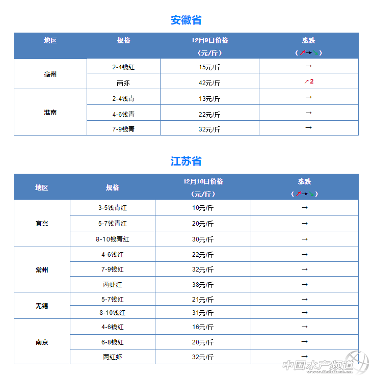 摘要: 中國(guó)水產(chǎn)頻道報(bào)道,12月10日全國(guó)小龍蝦市場(chǎng)批發(fā)價(jià)