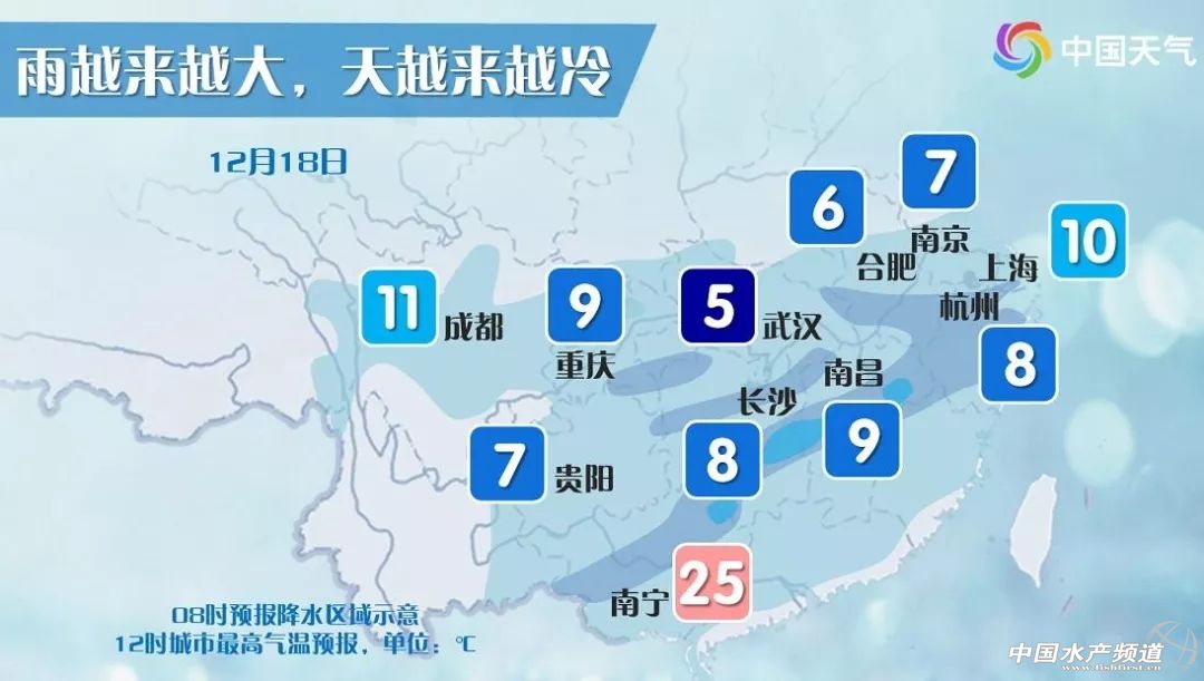 | 中國水產頻道綜合報道, 北方暴雪不停,冷空氣再暴襲廣東、廣西、福建、浙江、江蘇多地,斷崖式降溫,你的魚塘還好嗎?!附冬季低溫魚塘的管理要點 說到冷空氣,降溫總是一個揮之不去的話題,尤其是冬季,更是如此。16日起,今年12月第4波冷空氣正式南下了,對我國影響很大,強降雪和大降溫就是例子。比如,16日時北方地區出現了大雪,北京延慶更是10.2毫米暴雪。17日官方播報,內蒙古、北京、天津和東三省降雪厲害,出現了中到大雪。 另外,這還沒完,之前預報的黑龍江南部、吉林中部和東南部、遼寧東部等地,更是出現了暴雪。當然強降雪如此明顯,一切都是冷空氣南下惹的禍,大降溫又來了。官方最新數據顯示,17日白天,東北大部、華北北部、貴州中部、湖南南部、蘇皖中南部、上海、浙江和江西的北部等地,已經出現了4~8℃的降溫。 而上述地區局地氣溫降幅更大,達到了恐怖的10~17℃,實在嚇人。這樣一來,從整個情況看,某些地區最高17℃的降幅,算是大暴跌了,整體進入了嚴寒狀態。當然,即使目前出現了大降溫,但是還沒完,尤其是新冷空氣升級的情況下,1050百帕以上的冷高壓,預示著新冷空氣影響我國的程度或加大。 昨天,受到一股冷空氣影響,東北和長江流域氣溫暴跌模式已經開啟。其中東北三省會降溫明顯——哈爾濱、長春、沈陽最高氣溫全線跌破冰點,伴隨著3到4級的偏北風,體感十分寒冷。 然而,氣溫的暴跌還沒有結束,今天,東北各地將再迎“斷崖式”降溫,其中哈爾濱、長春的最高氣溫甚至將跌至-10℃以下,氣溫將處于與常年同期相比偏低的狀態。 而在長江流域,雖然比不上東北的天寒地凍,降溫的幅度也相當可觀。今明天,受冷空氣南下及持續降雨的影響,湖南北部、貴州南部、廣西中南部及廣東西部等地氣溫將下降6~8℃,廣西局地降溫可達10~12℃。降溫過后,江淮、江南多地的氣溫將繼續跌至個位數,部分地區累計降幅可達15℃,再加上4到5級的偏北風,體感會十分寒冷。城市中,武漢、上海、杭州、南昌等地氣溫還將陸續創下今年下半年氣溫新低,出門一定要捂嚴實點。 與此同時,南方的降雨今天還將繼續擴張地盤,尤其是江淮、江南等地降雨的強度還將加強。中央氣象臺預計,今天南疆西部山區和新疆沿天山地區、甘肅河西、內蒙古中部和東北部、西藏東部和西部、陜西南部、湖北北部和西部、湖南西北部、四川西部和南部、重慶中東部、貴州西北部等地部分地區有小到中雪或雨夾雪。江淮大部、江漢東部、江南、西南地區東部、華南大部等地部分地區有小到中雨,其中,湖南南部、廣西東北部等地部分地區有大雨。甘肅河西、河北北部、遼東半島、西藏中部、山東半島等地部分地區有4~6級及以上風。 明天,南疆南部及北疆西部和北部、青海南部、內蒙古東北部、黑龍江中部、吉林東南部、遼寧東北部、西藏北部和東部、四川西部等地部分地區有小雪或雨夾雪,其中,北疆北部和新疆伊犁河谷等地部分地區有中雪。江淮南部、江漢東部、江南、西南地區東部和北部、華南大部等地部分地區有小到中雨,其中,江西東部、福建西北部、廣西東北部等地部分地區有大雨(25~28毫米)。內蒙古中部、華北北部、山東半島、江南北部、西藏西部等地部分地區有4~5級及以上風。 20日,新疆南部和北部、青海南部、內蒙古東北部、黑龍江北部、西藏北部和東部、西南地區北部等地部分地區有小到中雪或雨夾雪,其中,北疆北部和西部等地部分地區有中到大雪。江淮西部和南部、江漢、江南、西南地區大部、華南及臺灣等地部分地區有小到中雨,其中,湖南南部、江西中北部及廣西東北部等地部分地區有大雨。內蒙古西部、華北北部、遼東半島、山東半島及西藏中西部等地部分地區有4~5級及以上風。 對江南地區來說,今天風雨交加,出行需注意行車安全,帶好雨具。而對于嚴重缺水的江西中南部、福建、廣東一帶,今天也會“喜提”小到中雨,對于緩和當地氣象干旱、降低森林火險等級有利。 廣東今起三天多雨水,天氣漸轉濕冷 今起三天,中等強度冷空氣逐漸自北向南影響廣東,天氣轉為陰冷,北部市縣有小雨局部中雨(日平均氣溫下降6~8℃),中部市縣有小雨(日平均氣溫下降4~6℃),南部市縣有分散小雨(日平均氣溫下降3~5℃),陸地風力逐漸轉為偏北風3-4級陣風5級,高海拔或高地風力可達4-5級陣風6級。 今天夜間到明天,大部分市縣氣溫逐漸下降,北部陰天有小雨局部中雨,中部陰天有小雨,南部多云間陰天有分散小雨。最低氣溫:韶關和清遠、河源北部5~7℃(高海拔山區4℃左右),南部沿海市縣14~17℃,其余市縣9~14℃。 20日,北部市縣陰天有小雨,中部市縣陰天有分散小雨,南部市縣多云間陰天有零星小雨。最低氣溫:粵北5~8℃(高海拔山區4℃左右),南部沿海市縣14~16℃,其余市縣9~13℃。未來三天,廣東降雨降溫,漸轉濕冷,公眾請注意添衣,雨天出行注意交通安全。另外,19日白天開始,廣東沿海海面逐漸加大到6-7級陣風8級,需注意海上航行安全。 浙江雨水相伴,降溫10℃ 浙江未來幾天陰雨持續,其中,中北部部分地區今天(18日)有中雨。同時,受冷空氣影響,還會有大風和降溫天氣。昨天白天,冷空氣影響浙北地區,下午14時,杭嘉湖一帶降溫明顯,部分地區較前一天同時次降幅達10℃左右。但是浙南仍然異常溫暖,14時27分,青田氣溫已達29.1℃,破12月歷史最高氣溫紀錄。 冷空氣