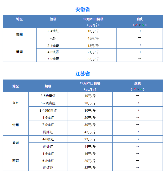 摘要: 中國水產頻道報道,12月22日全國小龍蝦市場批發價。
