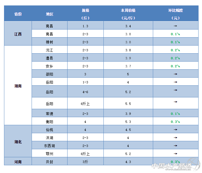 | 中國水產頻道原創報道, 淡水魚持續爛市,草魚塘頭價再次出現明顯下滑,只求少虧,賺錢是不可能了! 文/ 水產前沿 鄭鵬飛 一周要聞 隨著年關的臨近,最近有多個品種的水產品行情終于出現回暖,生魚、黃顙魚、加州鱸、羅非等都出現上漲。但是,作為淡水魚第一大品種的草魚,近期的行情仍然不容樂觀,多地出現爛市,塘頭價再次下滑,養殖戶表示漲價真是難如上青天。 廣東肇慶草魚行情低迷,尤其大草魚虧損嚴重 廣東韶關四大家魚出現爛市 據養殖戶介紹,最近廣東江門地區的草魚爛市,3斤的草魚塘頭賣4.6元/斤,下滑0.2元/斤。目前肇慶地區7斤的草魚塘頭只賣到5.4元/斤,養殖戶表示一斤魚要虧3塊錢,已經準備放血過年,再也不養草魚了。最近韶關地區淡水魚非常爛市,有流通商前天拉了一車4斤的花鰱其中三分之一都是4元/斤賣掉的,3斤多的草魚經常都是賣3-4元/斤。 江西南昌草魚持續低迷 湖北仙桃草魚出現爛市 湖南長沙3斤的草魚難賣 江西樟樹大草魚出現爛市 最近湖南長沙地區大草魚好賣一些,但是3斤的草魚還是沒人要,塘頭價只賣到4.1元/斤;常德地區3斤的草魚最新塘頭價賣3.8-3.9元/斤,下滑0.2-0.3元/斤;今天凌晨,湖北武漢白沙洲市場草魚嚴重爛市,3-5斤的草魚賣4-4.2元/斤,4-6斤的賣4.5元/斤,6-8斤的賣4.8元/斤左右,10斤以上的賣5.7元/斤;目前隨州地區3斤的草魚最新塘頭價只賣4.5元/斤,下滑0.3元/斤;近期仙桃地區草魚幾乎天天下跌,目前8-10斤的草魚零售才賣5元/斤。最近江西樟樹地區大草魚都不好賣,7斤的草魚只賣到5元/斤,3斤的草魚塘頭賣3.8元/斤,下滑0.1元/斤;南昌地區3斤的草魚最新塘頭價賣3.6元/斤;瑞金地區3斤的草魚賣3.5元/斤,鯉魚賣3-4元/斤,鯽魚賣5-6.2元/斤,養殖戶表示現在的魚價賣就是虧。 最近河南鄭州地區3斤的草魚最新塘頭價只賣到4.3元/斤,下滑0.3元/斤。目前江蘇淮安地區3斤的草魚塘頭價只賣到3.8-4元/斤。從流通商了解到,目前甘肅蘭州市場3斤的草魚最新報價在4.9元/斤左右,下滑0.1元/斤。最近河北地區淡水魚再次下滑,有唐山養殖戶昨天剛剛賣的8兩的鯽魚5.8元/斤,鯉魚3.9元/斤,白鰱賣1.8元/斤,花鰱賣3.8元/斤,2斤多的草魚賣4元/斤,3斤多的草魚最高不超過4.4元/斤,養殖戶表示這樣養魚賠大了。 筆者建議,挽救草魚行業的根本只能是減量提質,但從養殖戶角度短期內可能比較現實一點的就是頂住資金壓力,做到有規劃的差異化賣魚,明年優化其他品種的放養比例,避免雞蛋放在一個籃子導致行情低迷時壓力太大。 一周行情 華南地區 中山:從養殖戶和流通商了解到,目前中山地區3斤的草魚塘頭大部分還是維持在賣4.5-4.6元/斤,近期草魚行情仍然低迷,預計短期內不會有太大波動。 江門:據養殖戶介紹,最近江門地區的草魚依然很爛市,目前小規格的草魚基本沒人要,3斤的草魚最新塘頭價賣4.6元/斤左右,較之前有0.2元/斤的下滑。 肇慶:本周肇慶地區的草魚整體行情還是很低迷,塘頭價暫時沒有出現明顯變化,3斤的草魚最新塘頭價基本還是維持在5元/斤。有養殖戶表示,現在7斤的草魚塘頭只賣到5.4元/斤,一斤要虧3塊錢,已經準備放血過年,再也不養草魚了。不過也有養殖戶表示,這兩天大草魚好賣了一些,希望接下來行情能有所好轉。 韶關:最近韶關地區淡水魚行情非常爛市,有流通商表示現在四大家魚要改名叫四面楚歌了,前天拉了一車4斤的花鰱才賣5元/斤,有接近三分之一只賣到4元/斤,3斤多的草魚經常都是賣3-4元/斤。 廣西:本周廣西地區的草魚行情還是沒有出現好轉,塘頭價基本保持平穩。從養殖戶了解到,目前貴港地區3斤的草魚最新塘頭價賣5.2元/斤;桂林地區3斤的草魚塘頭價也還是只有5元/斤,養殖戶表示還是老樣子,暫時沒有看到上漲跡象。 華中地區 湖南:最近湖南地區的大草魚比較好賣,但是小規格草魚依然無人問津,賣魚壓力較大。有養殖戶表示,目前長沙大草魚好賣一些,但是3斤的草魚沒人要,塘頭價只賣到4.1元/斤,現在養殖戶是一談到四大家魚就傷心,只能期待年后看看能否有好轉了。據了解,目前常德地區3斤的草魚最新塘頭價賣3.8-3.9元/斤,較之前下滑0.2-0.3元/斤;邵陽地區3-4斤的草魚塘頭賣5-5.3元/斤,基本維持上周水平。 湖北:本周湖北地區的草魚行情還是很低迷,多個地區塘頭價再次出現下滑。從養殖戶了解到,今天凌晨武漢白沙洲市場草魚嚴重爛市,3-5斤的草魚賣4-4.2元/斤,4-6斤的賣4.5元/斤,6-8斤的賣4.8元/斤左右,10斤以上的賣5.7元/斤。目前隨州地區3斤的草魚最新塘頭價只賣到4.5元/斤,再次下滑0.3元/斤。有養殖戶表示最近仙桃地區草魚幾乎天天下跌,目前8-10斤的草魚零售才賣5元/斤,市場批發也只有4.5元/斤。 江西:最近江西多個地區草魚塘頭價再次出現下滑。據了解,目前樟樹地區大草魚都不好賣,7斤的草魚只賣到5元/斤,3斤的草魚塘頭賣3.8元/斤,較上周下滑0.1元/斤;南昌地區3斤的草魚最新塘頭價賣3.6元/斤,養殖戶表示還是沒有漲價的勢頭,想漲價難于上青天;目前瑞金地區3斤的草魚賣3.5元/斤,鯉魚賣3-4元/斤,鯽魚賣5-6.2元/斤,養殖戶表示現在的魚價這么便宜,賣就是虧。 河南:本周河南地區的草魚行情也是出現了小幅下滑。從養殖戶了解到,目前鄭州、開封等地區3斤的草魚最新塘頭價只賣到4.3元/斤,較上周下滑0.3元/斤。 華東地區 江蘇:近期江蘇地區的淡水魚整體行情一人低迷,多個地區草魚塘頭價出現下滑。從養殖戶了解到,目前淮安地區3