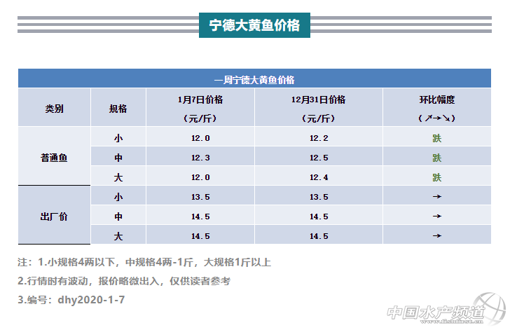 | 中國水產頻道原創(chuàng)報道, 文/ 水產前沿 李帥 近期要聞 1.大黃魚予檢合格才有人收購,寧德大黃魚技術服務中心霞浦七星服務點投入運營,或將改善魚價爛市現象! 12月23日,繼寧德大黃魚技術服務中心蕉城城澳服務點于十一月份揭牌后,服務中心霞浦七星服務點也正式投入運營。 據了解,霞浦七星服務點由寧德市漁業(yè)協會、寧德市水產技術推廣站共同組建,該中心位于霞浦縣大黃魚養(yǎng)殖集中區(qū)的溪南鎮(zhèn)七星海域塔禮漁排,配備了水產品藥物殘留快速檢測、魚病檢測儀器設備,將更方便快捷地為海上廣大養(yǎng)殖戶無償提供大黃魚等海水養(yǎng)殖品種病害檢測和水產品藥物殘留快速檢測服務。 服務點負責人員林先生告訴水產前沿,“養(yǎng)殖戶計劃銷售大黃魚前可委托中介代為取樣送檢,合格后由中介與協會推薦給收魚企業(yè)。七星點早上10:00可開始檢測,最早中午可出結果,便利企業(yè)收魚。需提前及周邊的中介及收魚戶可送至該點檢測,請?zhí)嵩珉娫掝A約。” 寧德市漁業(yè)協會韓承義秘書長在之前采訪中也表示,“協會已要求收魚企業(yè)不得收購未預檢及檢測不合格的大黃魚。從收購環(huán)節(jié)開展行業(yè)自律、全面推廣收購前預檢工作,從源頭切斷了不合格大黃魚進入流通環(huán)節(jié)” 2.關于檢測合格的魚,別便宜賣,或許能有高價! 隨著國家與消費者對食品安全日益重視,藥檢合格的大黃魚已是供不應求。未來養(yǎng)殖戶養(yǎng)殖綠色無藥殘的大黃魚已是趨勢,但是今年行情一路走低,目前已經跌倒12元一斤。對于后市,有相關方面專家指出,應該保護好綠色養(yǎng)殖模式養(yǎng)殖戶的利益,將無藥殘魚和一般魚的收購價區(qū)別開,通過市場經濟的調節(jié)手段,引導養(yǎng)殖戶轉變養(yǎng)殖思路,不再“以量取勝”,而是更加追求質量,只要業(yè)內大部分人堅持住,合格大黃魚價格每斤回升到十四塊都很正常。 一周行情 本周寧德大黃魚海面價格再次全規(guī)格小幅下跌,每斤下降0.2-0.4元不等。目前全國各地大黃魚供需平衡,價格已經處于穩(wěn)定狀態(tài),沒有太大的波動,而業(yè)者一直期待的“雙節(jié)”需求,現在看來也拯救不了總體低迷的魚價。 目前離春節(jié)不到20天,現在看來魚價很難出現大的漲幅,可以預見節(jié)后市場更是消費淡季,對于后市行情的走向大部分人都不看好,甚至有業(yè)內人士分析,“價格低迷會一直持續(xù)到明年3,4月份。建議有計劃的養(yǎng)殖戶盡早出魚,越晚出虧損越多。” 其實節(jié)后市場主要是看今年的節(jié)假期能消化多少存量,2020年預計又有一部分人離開這個圈子,魚價已經爛市兩年,深深的挫傷了養(yǎng)殖戶的積極性,或許從明年的投苗量就可以看出來,但是任何行業(yè)盛極而衰,也必然會衰極而盛,萬一再次出現20-30元/斤的好行情,將會一舉把前兩年的虧損彌補回來,但資金周轉和巨大的風險,也不是一般承受能力人能堅持得下去。 |