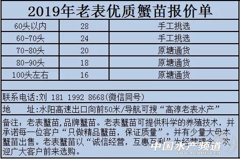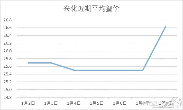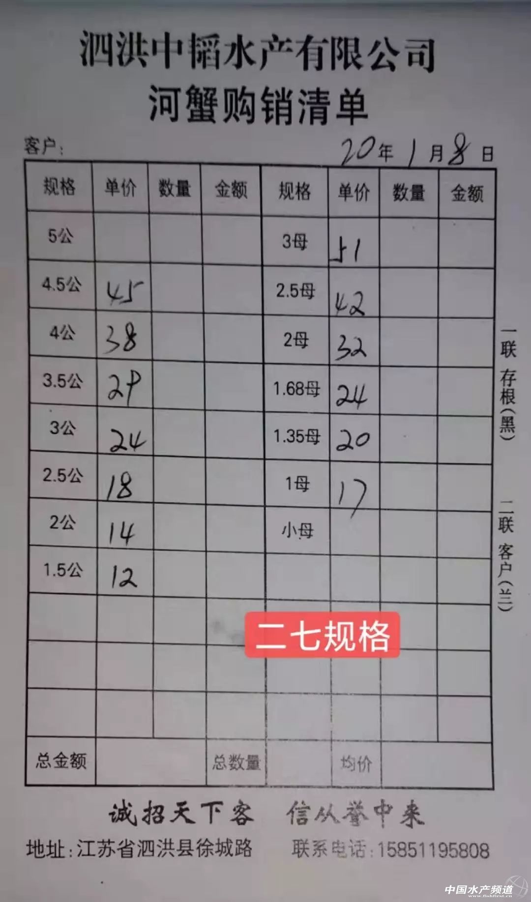 | 中國水產(chǎn)頻道原創(chuàng)報(bào)道, 扣蟹參考價(jià) 高淳 水陽 盤錦 成蟹行情解析 高淳 近期高淳精品蟹價(jià)較為平穩(wěn),今天蟹價(jià)略有上漲,其中3公、2.8母、2母、1.8母均漲1元/斤,其他各規(guī)格蟹價(jià)基本未變。與去年同期相比,目前蟹價(jià)明顯偏低。 興化 今天興化普蟹價(jià)格整體上漲,平均蟹價(jià)漲1元/斤,為近期最大調(diào)整。今天大規(guī)格蟹價(jià)普遍漲2元/斤,中規(guī)格漲1元/斤,小規(guī)格基本未變。 成蟹參考價(jià) 高淳 此報(bào)價(jià)由高淳倪老板提供 興化 此報(bào)價(jià)由興化丁老板提供 泗洪 此報(bào)價(jià)由泗洪孫老板提供 泗洪 此報(bào)價(jià)由無錫王老板提供 |
