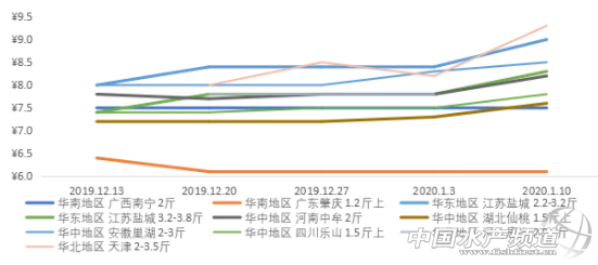 | 中國水產頻道原創(chuàng)報道, 本周多地區(qū)鮰魚漲價,中美協議或能增加未來出口量 文/ 水產前沿 葉豐齊 水產前沿專業(yè)為你推送鮰魚 最新價格行情及行業(yè)新聞、各類資訊。 同時歡迎行業(yè)人士踴躍爆料,請掃二維碼聯系。 各產區(qū)鮰魚行情走勢 鮰魚要聞 1.中美雙方擬于下周簽署第一階段協議,貿易戰(zhàn)以來增加的出口關稅或將得以調整,鮰魚出口量可能增加; 2、河北和天津地區(qū)鮰魚價格出現亂象,最高漲1.1元/斤; 3.河南如今氣溫較低,如果不能清塘,拉網易傷魚造成損失,整體出魚量不多; 4.江蘇走北京市場鮰魚因囤貨量少已經漲到9元/斤; 5.安徽加工廠偏好大規(guī)格鮰魚,2-3斤規(guī)格本周繼續(xù)上調0.2元/斤。 整體行情綜述 本周多地區(qū)鮰魚漲價:河北唐山和天津地區(qū)鮰魚價格目前較亂,2斤以上規(guī)格9-9.3元/斤;河南地區(qū)紅鮰魚價8.4元/斤,依然較8.2元/斤的黑鮰稍高;湖北仙桃1.5斤以上規(guī)格紅鮰較上周漲0.4-0.5元/斤,1.8斤以上規(guī)格黑鮰7.6元/斤;荊州地區(qū)2斤以上規(guī)格鮰魚出魚較多,較上周上漲0.5元/斤;安徽巢湖加工廠依然偏愛2-3斤大規(guī)格,本周魚價上調0.2元/斤;四川樂山地區(qū)本周少量出魚,環(huán)比上周上漲0.3元/斤;廣西地區(qū)大多數存塘魚未到出魚規(guī)格,行情暫時不變;廣東地區(qū)拉魚車不少,但存塘仍較多,價格穩(wěn)定。 各產地行情分析 河北唐山和天津地區(qū):主要出2-3.5斤的北京規(guī)格和走唐山本地以及秦皇島、沈陽的2.5-4斤規(guī)格黑鮰;不過目前存魚不多,天氣寒冷養(yǎng)戶出魚甚少,外塘基本沒有,僅溫棚零星出魚,市場主要靠外地貨源支撐;本周2-3.5斤規(guī)格黑鮰價格呈現亂象,約9-9.3元/斤,環(huán)比上周暴漲0.8-1.1元/斤。 河南地區(qū):中牟市出2斤左右規(guī)格鮰魚,水車走市場;當地鮰魚整體出魚量不多,陸陸續(xù)續(xù)出;因氣溫較低,如果不能清塘,拉網易傷魚造成損失;目前紅鮰價格依然稍高于黑鮰,因為其養(yǎng)殖成本相對較高,養(yǎng)殖量稀少;本周紅鮰8.4元/斤,環(huán)比上周上漲0.2元/斤,黑鮰8.2元/斤,環(huán)比上周上漲0.4元/斤。 湖北地區(qū):仙桃市養(yǎng)殖量比較稀少的1.5斤以上規(guī)格紅鮰塘頭價8元/斤,環(huán)比上周上漲0.4-0.5元/斤;1.8斤以上規(guī)格黑鮰7.6元/斤,環(huán)比上周上漲0.3元/斤,業(yè)者預計下周還會繼續(xù)漲價;荊州市黑鮰1.2-2斤規(guī)格塘頭價6元/斤,同上周價格,2斤以上規(guī)格本周出魚較多,約7.7元/斤,環(huán)比上周上漲0.5元/斤。 安徽地區(qū):當地存塘魚仍較多,巢湖加工廠收1-3斤規(guī)格的黑鮰,80%鮰魚加工品內銷,以北京、上海和廣州為主要終端市場;因目前市場偏愛大規(guī)格,小規(guī)格訂單量減少,1-2斤規(guī)格6.5元/斤,同上周價格,2-3斤規(guī)格8.5元/斤,環(huán)比上周上漲0.2元/斤。 江蘇地區(qū):根據消費市場,鹽城黑鮰有3種規(guī)格:走成都市場的0.8-1.3斤規(guī)格今年基本沒有出貨;走北京、山東市場的2.2-3.2斤(平均2.5-2.6斤)規(guī)格因囤貨量少,本周出魚量不大,約9元/斤,環(huán)比上周上漲0.6元/斤;走甘肅、新疆、西藏、廣西的3.2-3.8斤(平均3.5-3.6斤)規(guī)格,約8.3元/斤,環(huán)比上周上漲0.5元/斤;業(yè)內人士認為魚價還會繼續(xù)上漲,下周出魚量應會較多。 四川地區(qū):畝產3000斤左右的樂山出1.5斤以上規(guī)格黑鮰,因目前存魚量不多,為避免低溫抓捕傷魚,出魚量甚少;本周魚價約7.8元/斤,環(huán)比上周上漲0.3元/斤;業(yè)者認為春節(jié)前一周價格會再上漲一些,部分養(yǎng)戶或將清塘出魚。 廣西地區(qū):本地消費需求并非特別大,價格較為穩(wěn)定;南寧、柳州、欽州、玉林抓1.5-2斤規(guī)格紅鮰、黑鮰,以體色深者優(yōu)先;南寧和欽州塘頭價約7.5元/斤,同上周,柳州和玉林約7.2元/斤,同上周;目前存塘以2019年魚為主,0.5-0.8斤規(guī)格較多,預計今年4-5月才會大量出魚。 廣東地區(qū):以水車走市場為主,只有少量進加工廠,訂單較少;中山、珠海、廣州、順德、肇慶等地區(qū),1.2斤以上規(guī)格走市場黑鮰塘頭價約6.1元/斤,同上周;據了解,拉魚水車不少,但目前存魚量仍較大,價格暫時穩(wěn)定。 |