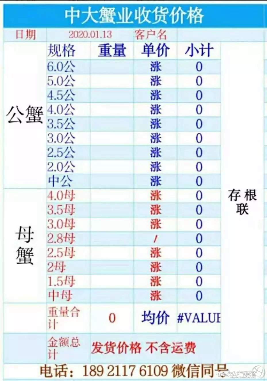 | 中國水產頻道原創報道, 扣蟹參考價 高淳 水陽 盤錦 成蟹行情解析 高淳 近期高淳精品蟹價持續上漲,今天蟹價平穩,各規格蟹價基本未變。 興化 今天興化普蟹具體價格以實際交易為準。 成蟹參考價 高淳 此報價由高淳倪老板提供 興化 此報價由興化丁老板提供 泗洪 此報價由泗洪孫老板提供 泗洪 此報價由無錫王老板提供 |