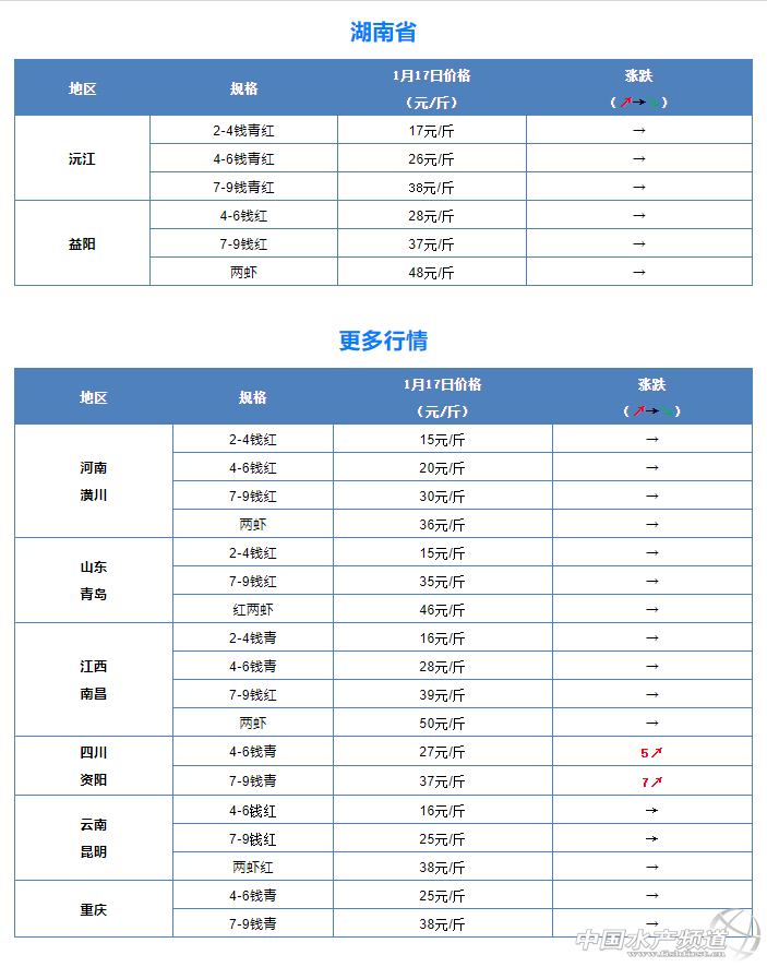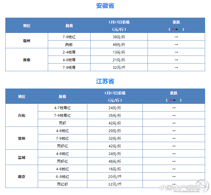 摘要: 中國水產頻道原創報道,1月17日全國小龍蝦市場批發價。