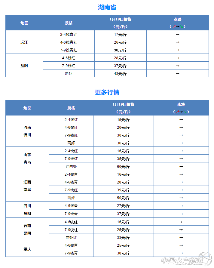 摘要: 中國水產頻道報道,1月19日全國小龍蝦市場批發價。